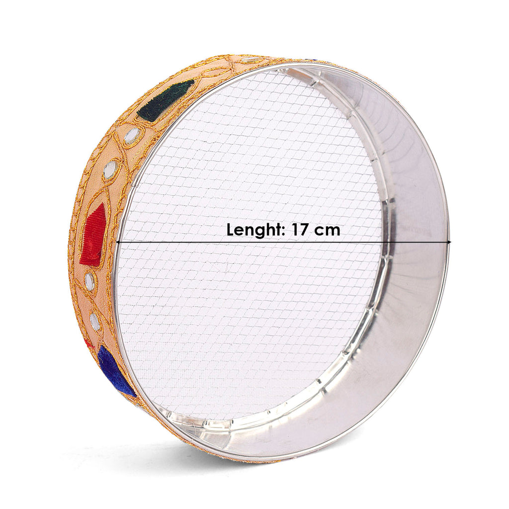 About Product: Karwa chauth beautiful Steel thali set includes a thali, Lota, Sieve for traditional and trendy way of karwa chauth pujan for all the married / engaged ladies and girls. Be attractive by using such a decorative piece of thali of puja for your love/ life. This thali can also be used on Diwali/ Deepawali Pujan. Karwa chauth thali set, karwa chauth thali, karwachauth thali platter, karvachauth thali platter, pooja thali set, steel puja thali set, complete karwachauth set, karwachouth set, designer thali set,hanmade thali set, Indian traditional set, karwachauth thali.