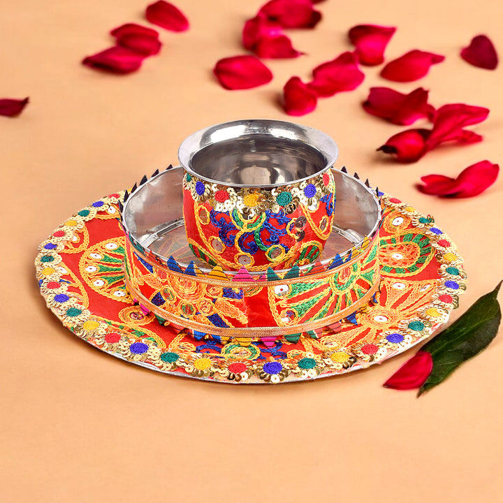 Vibrant Traditions Multicolor Karwa Chauth Thali Set - 3pc