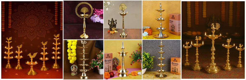 Product NameSizes AvailableUsageKerala Nilavilakku 10” to 52”Pooja, temple, inauguration Kerala 3 Step Peacock Diya12”, 18”, 24”Wedding stage, cultural eventKerala Kuthu Vilakku Brass11”, 13”, 18”Temple rituals, daily worshipPaavai Vilakku Brass16”, 24”, 30”Reception, luxury dΓ©corBrass Kerala Samai Deepak18”, 24”, 36”, 44”Mandir, festivals, event dΓ©cor