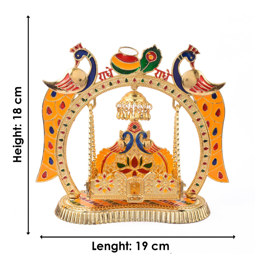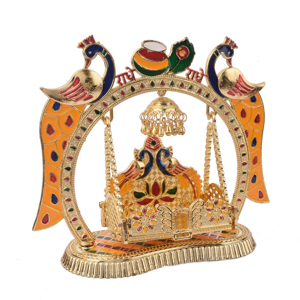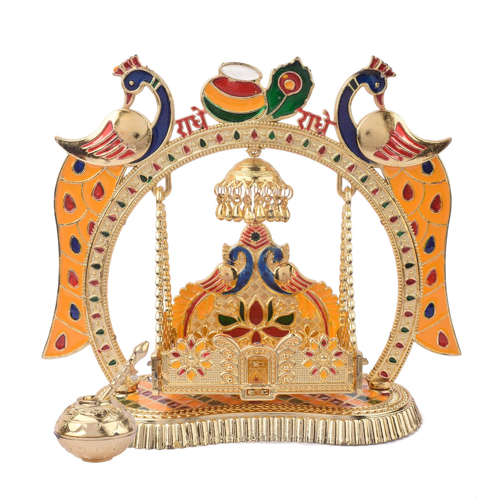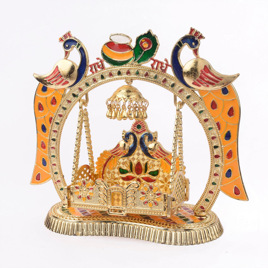 Product Name: Charming Temple Style Laddu Gopal Jhula – Golden Finish Swing