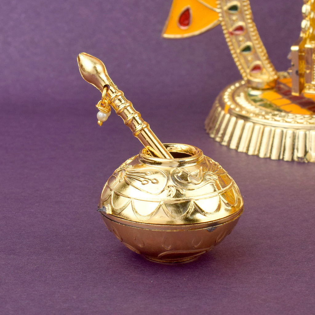 This beautiful Temple Style Laddu Gopal Jhula is a stunning piece for your home mandir or Janmashtami dΓ©cor. Designed with a golden finish and intricate temple-style structure, it adds a divine charm to your pooja setup.