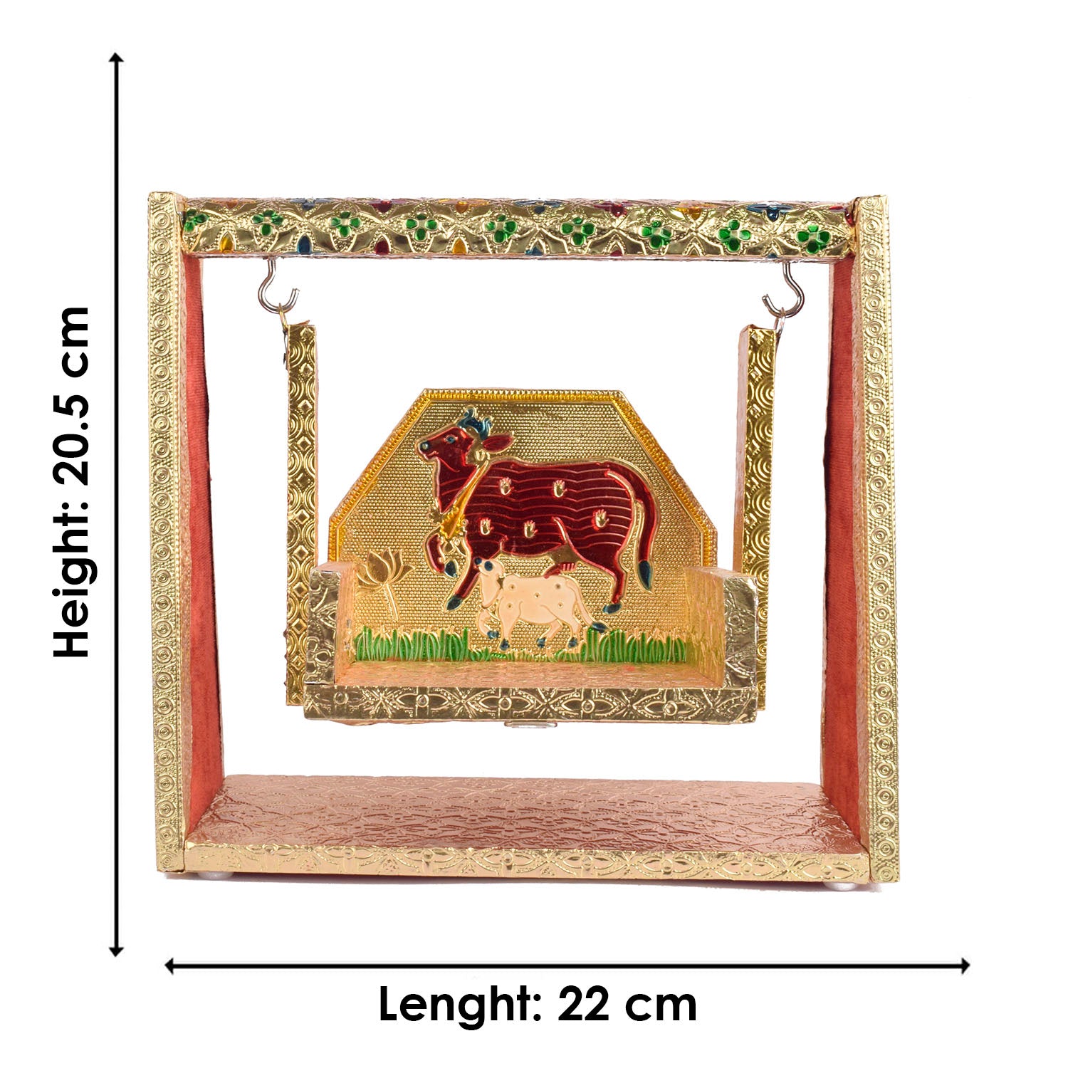 Perfect for placing Laddu Gopal Ji or Ganpati during festive occasions or daily worship, this jhula is handcrafted by skilled artisans from West Bengal and Uttar Pradesh. Its rich colors and artistic finesse make it a striking devotional accessory.