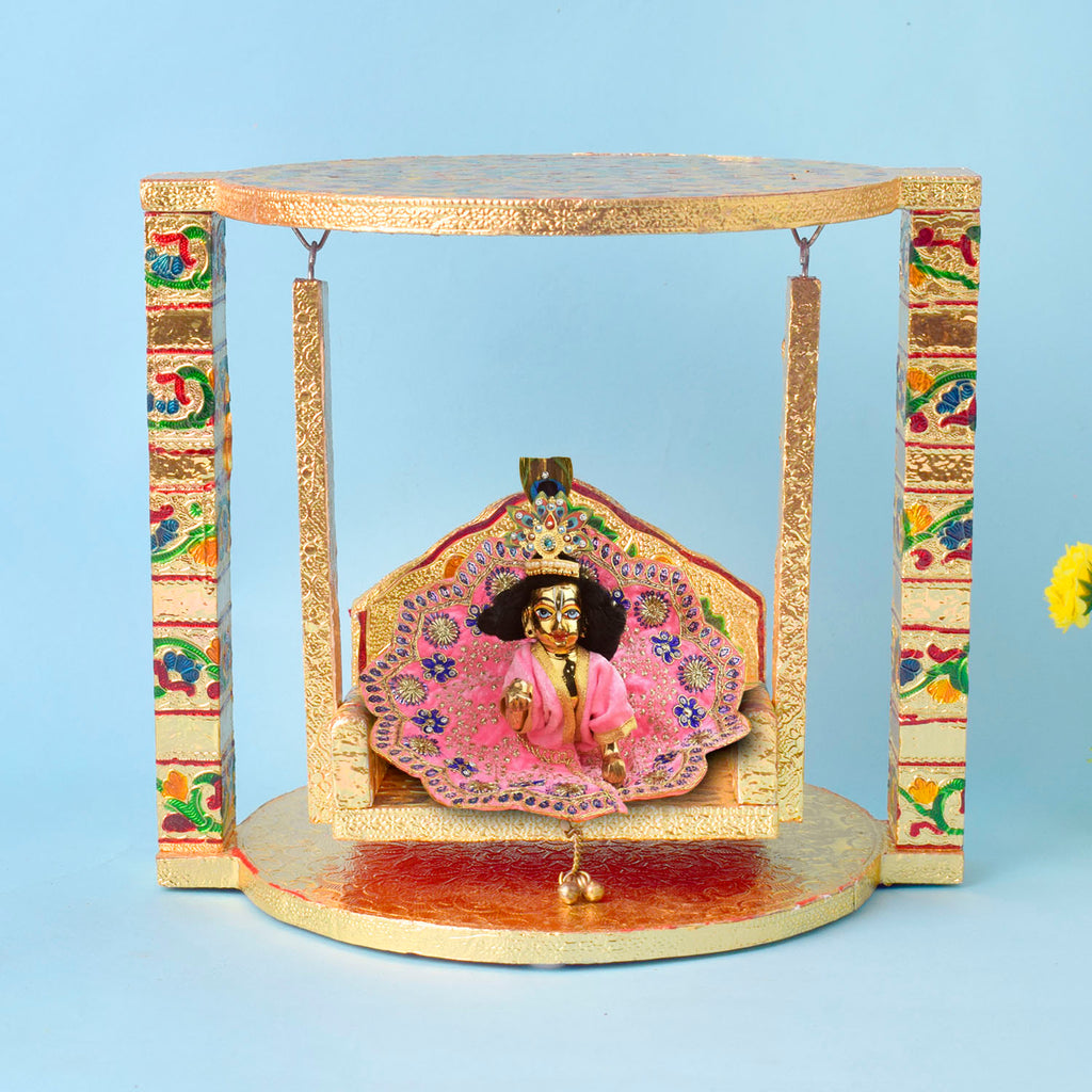 Handmade by skilled artisans from West Bengal and Uttar Pradesh, this jhula is perfect for Janmashtami celebrations and daily rituals. Whether placed in a home mandir or used as festive dΓ©cor, it adds a regal touch to your sacred space and makes a thoughtful devotional gift as well.