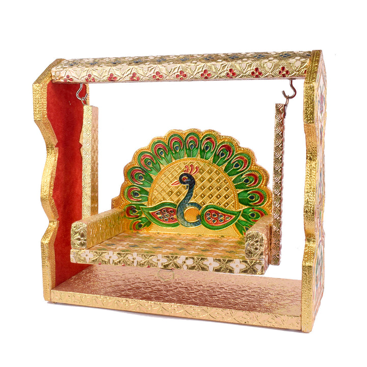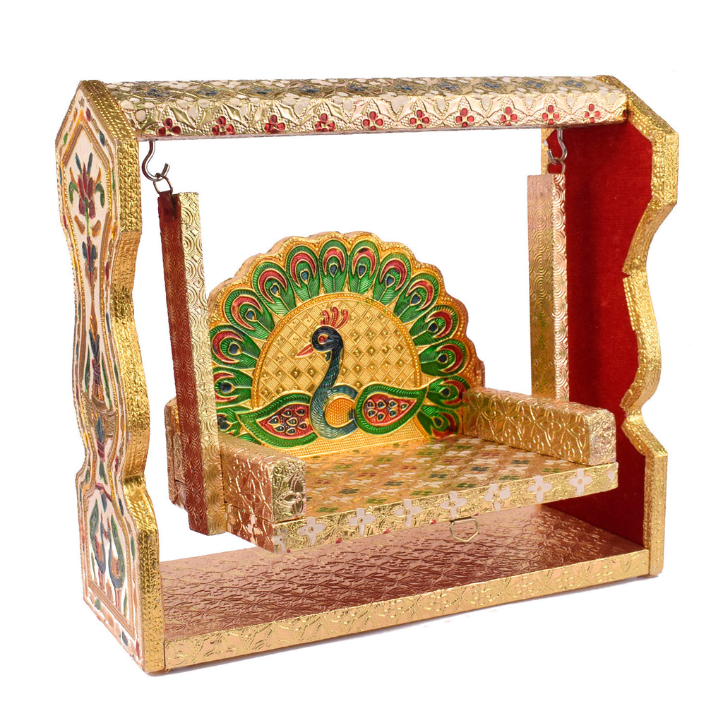 Bring divine elegance to your home mandir with this Traditional Meenakari Jhula for Laddu Gopal – an exquisite swing handcrafted from wood and decorated with detailed Meenakari artistry. The vibrant colors and fine patterns create a graceful backdrop for your beloved Krishna idol.
