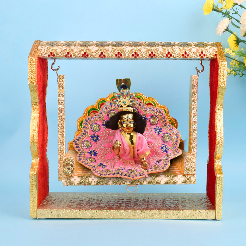 meenakari jhula for laddu gopal | traditional krishna swing | pooja swing for kanha ji | meenakari bal gopal cradle | kanha ji jhula for janmashtami | colorful laddu gopal swing | krishna jhula with meenakari work | ornate jhula for pooja | laddu gopal jhula stand | meenakari swing for krishna idol