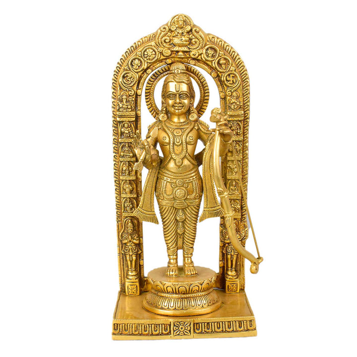 About Product: The 11.8 Inch Pure Brass Ayodhya Ram Lalla Idol is a beautifully crafted statue that embodies the divine presence of Lord Ram. Made from high-quality pure brass, this idol features intricate detailing and a superfine finish, making it a perfect addition to any home temple or puja room. The statue showcases Lord Ram in his revered Ayodhya Lalla form, symbolizing virtue, dharma, and devotion. Ideal for spiritual worship, this idol is also a thoughtful gift for devotees and collectors, adding a sacred touch to your space. The idol is not only a symbol of peace and righteousness but also a reminder of Lord Ram's eternal virtues. Its durable brass construction ensures long-lasting beauty, making it a cherished heirloom for generations to come.