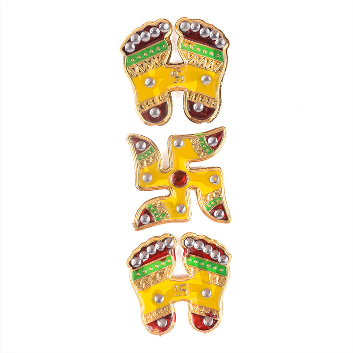 Item Name: Diwali Bliss Yelllow charan Paduka and Swastik Stickers s Set of 3