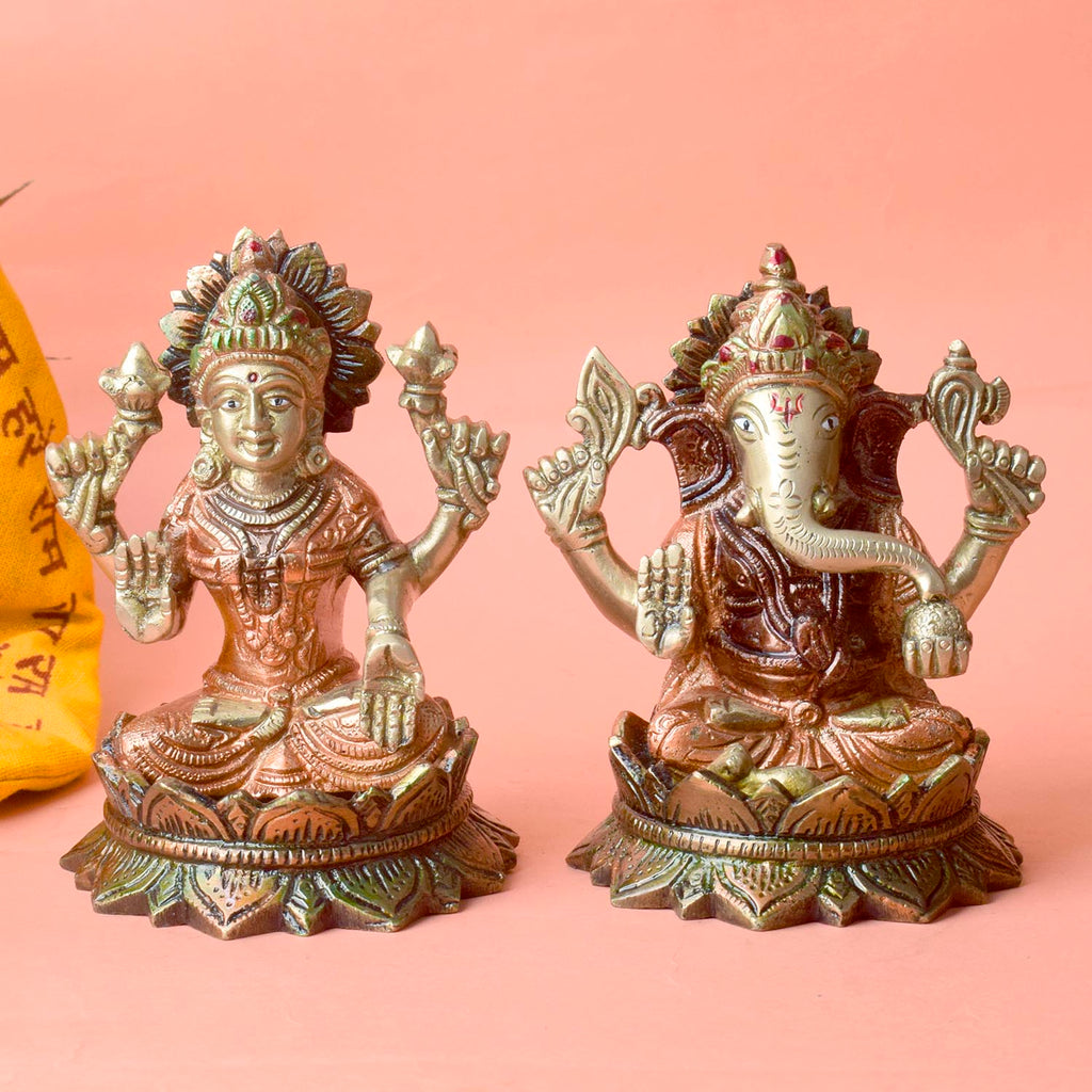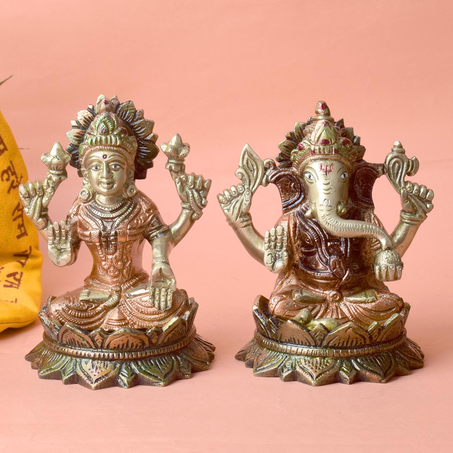 Buy Gorgeous Brass Lakshmi Ganesha Pair Idol online | Satvikstore.in – satvikstore.in