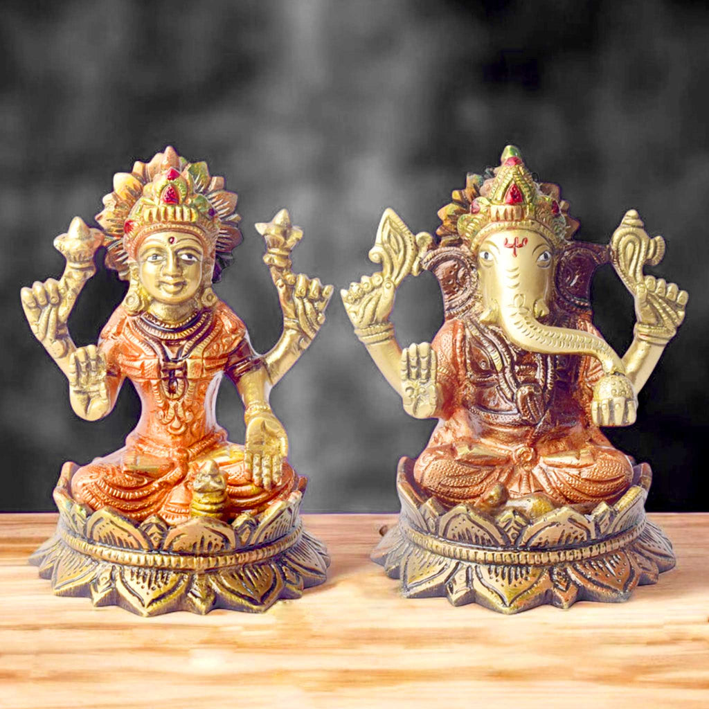 Buy Online | Gorgeous Brass Lakshmi Ganesha Pair Idol | Satvikstore.in – satvikstore.in