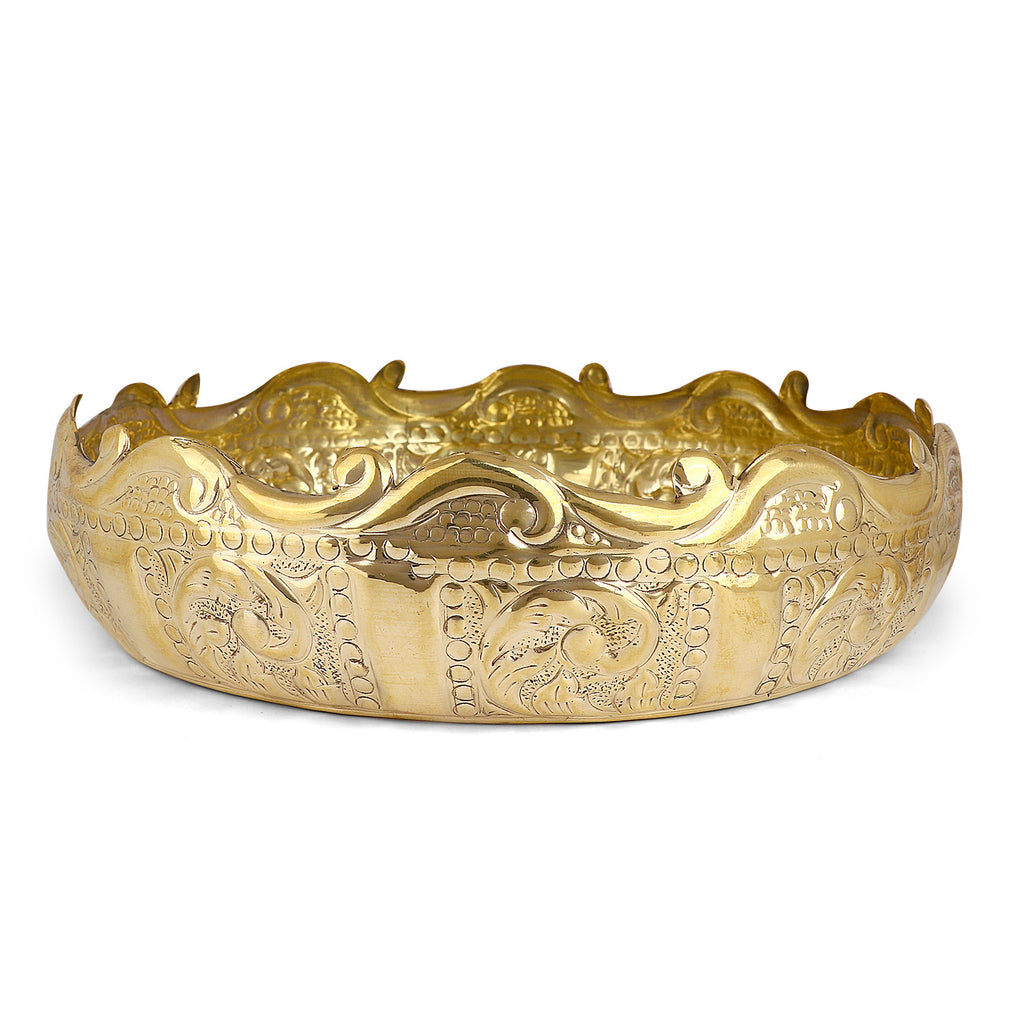Elegant Floral Desing Embossed Brass Urli For Decor