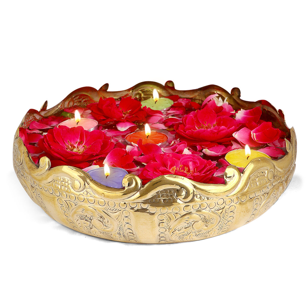 Decorative Brass Floral Desing Embossed Brass Urli| Home Decor Product – satvikstore.in