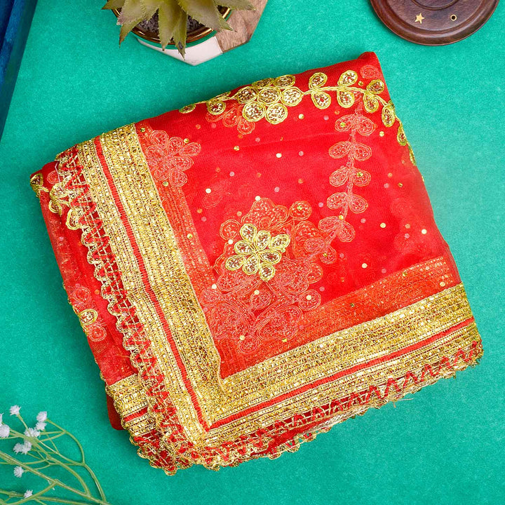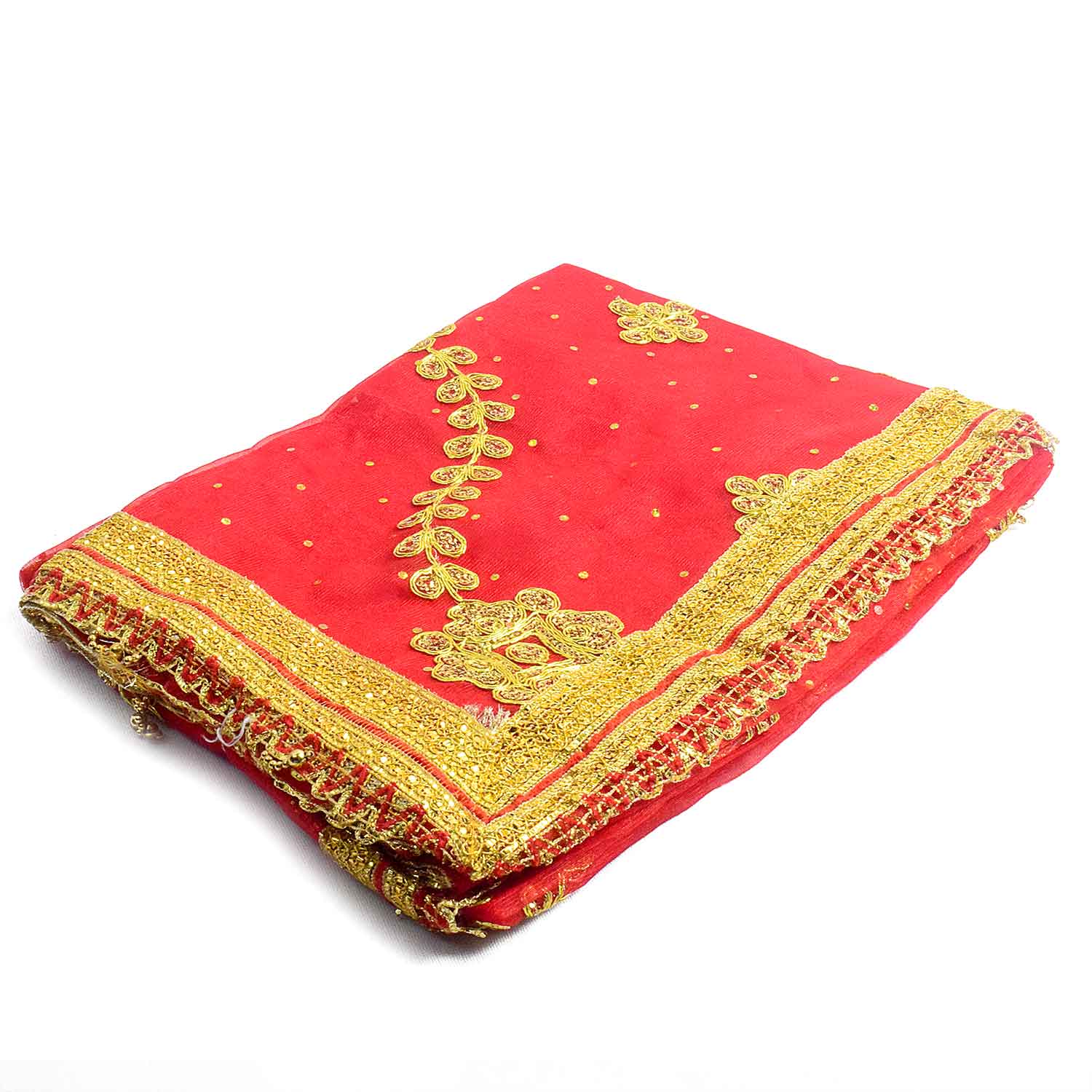 Pooja chunri for Mata Rani | 74x43 inch devotional cloth | vibrant festive vastra | traditional deity dupatta | temple pooja accessory | sacred red chunni | auspicious idol covering | spiritual pooja fabric | Navratri mandir decoration | elegant pooja cloth
