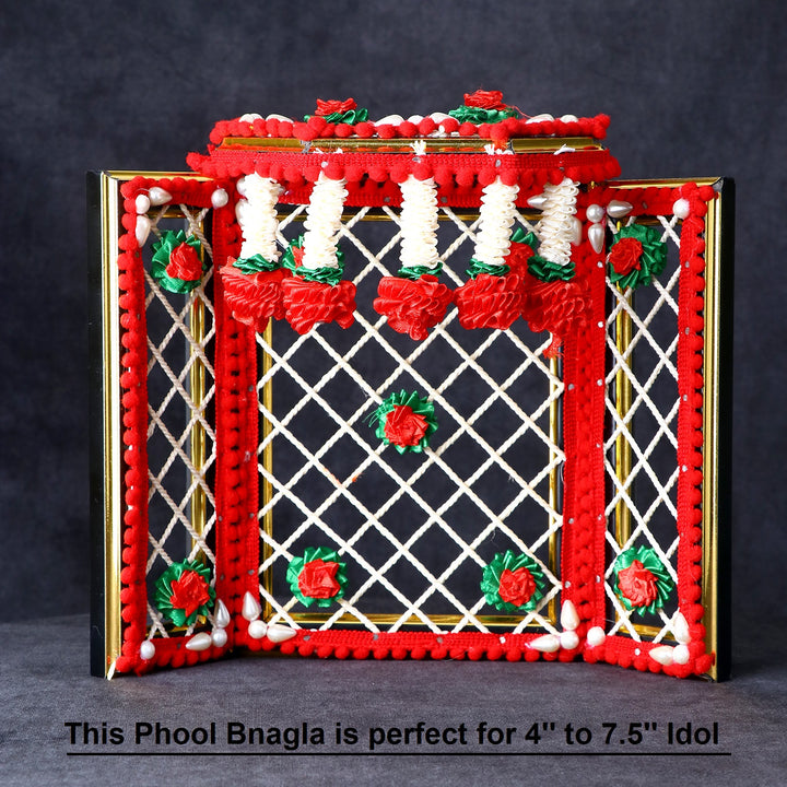Description: On significant festivals, Phool Banglas are typically used as a decoration and a backdrop for Laddu Gopal and Ganpati. These phool banglas are made by the most talented artisans in West Bengal and Uttar Pradesh. On the occasions of Ganesh Chaturthi, these are widely used at pandals and mandirs as well as homes and businesses.