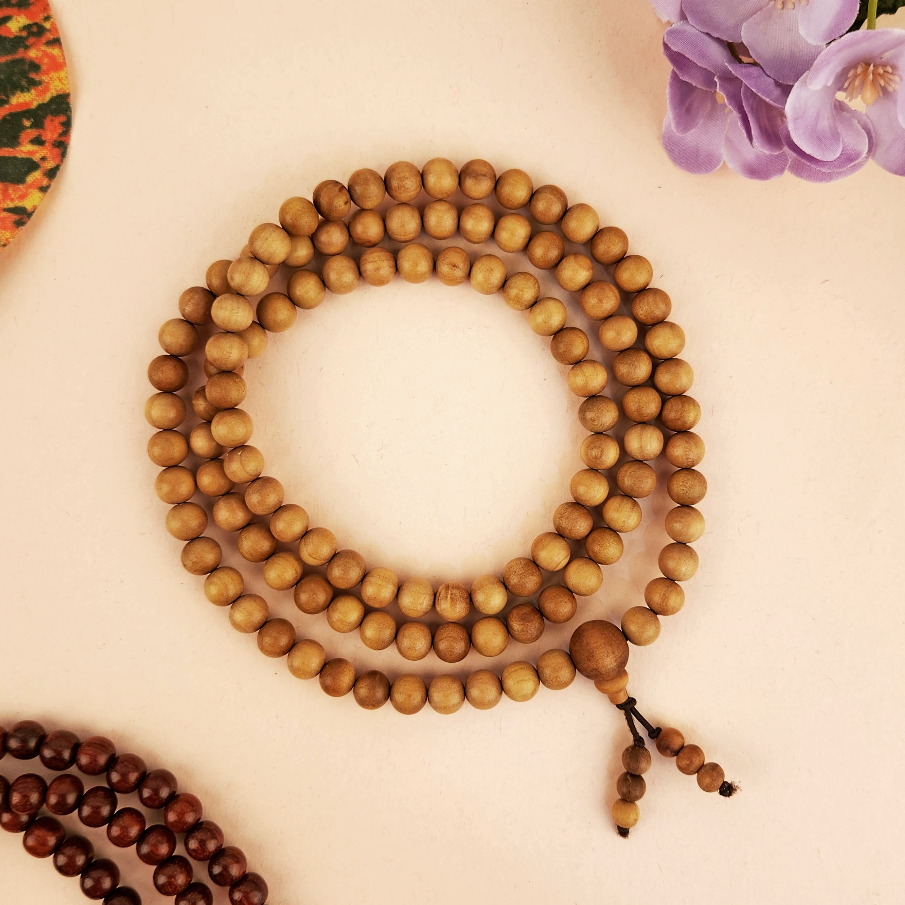 Certified 6mm 100% Original Authentic Mysore White Sandalwood (Chandan) Jap Mala