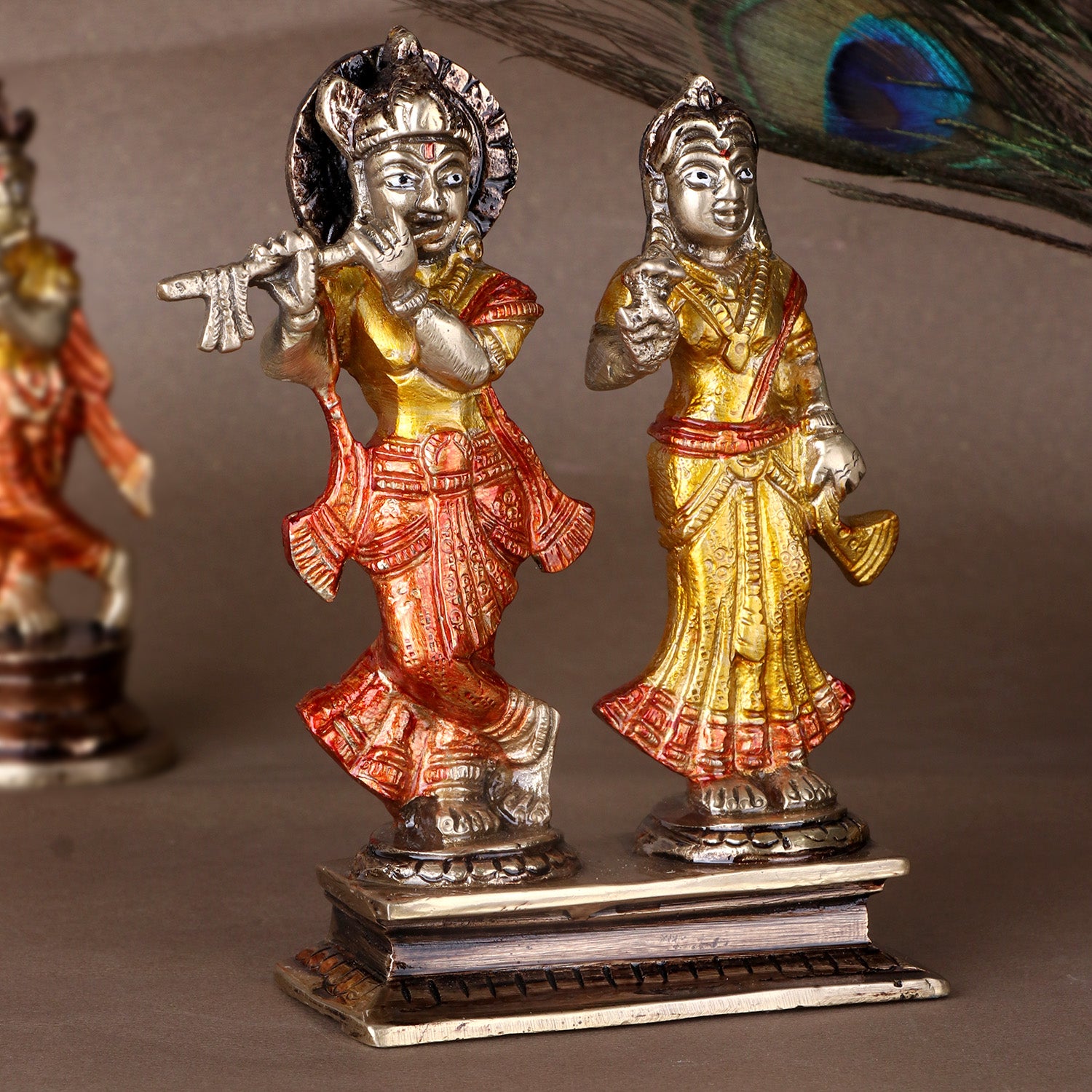 • Item Name: 5.9 Gorgeous Radha Rani And Krishna Kanhaiya Colorful Brass Idol