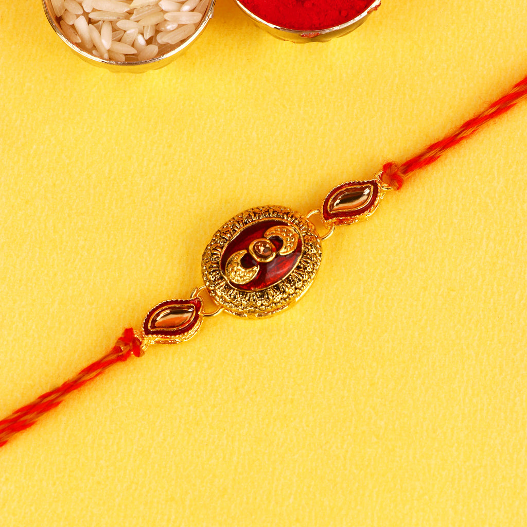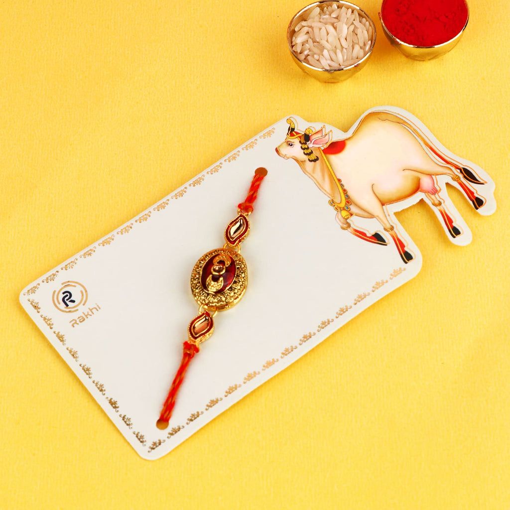 Kundan Rakhi: Bedecked with dazzling Kundan stones, our kundan rakhi collection epitomizes elegance and opulence. Celebrate the cherished moments and memories shared with your siblings.