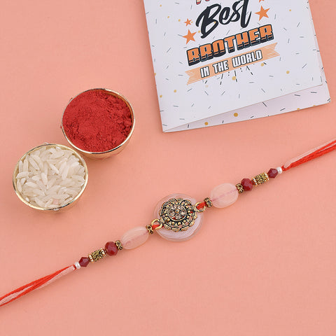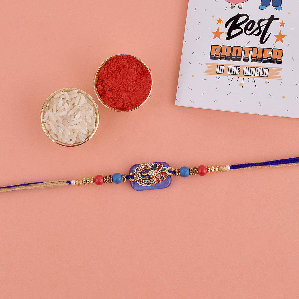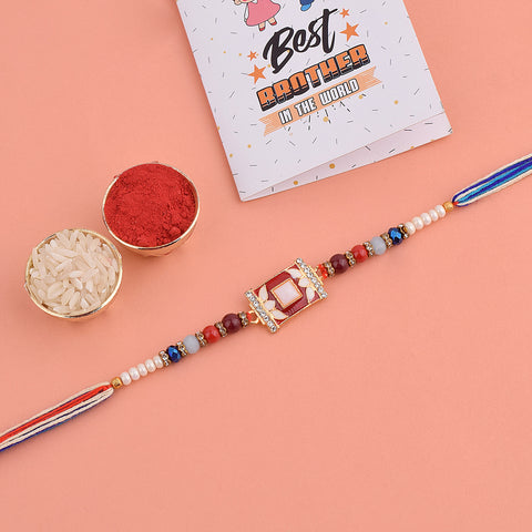 Beaded Rakhi: Adorned with intricate beads, our beaded rakhi collection exudes charm and elegance. Celebrate the joyous bond with your siblings as you tie these vibrant and delightful rakhis on their wrists.