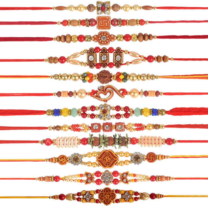 Beaded Bhaiya Rakhi Set of 2: Bedecked with colorful beads, these rakhis represent the joyous moments and cherished memories of growing up together. Embrace nostalgia and affection with this delightful beaded rakhi set.