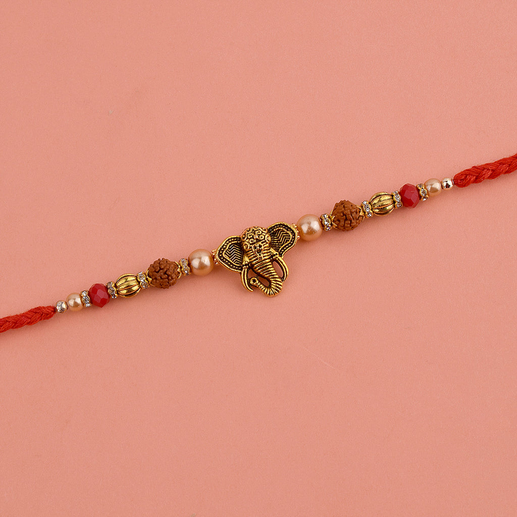 Beaded Rakhi: Adorned with intricate beads, our beaded rakhi collection exudes charm and elegance. Celebrate the joyous bond with your siblings as you tie these vibrant and delightful rakhis on their wrists.