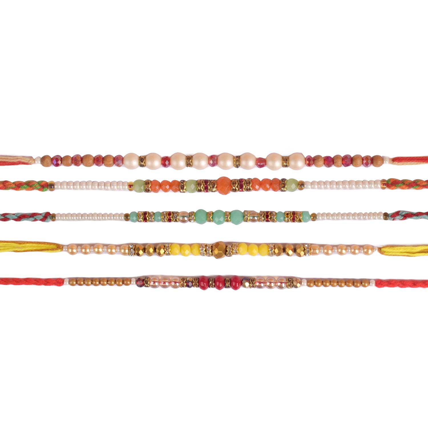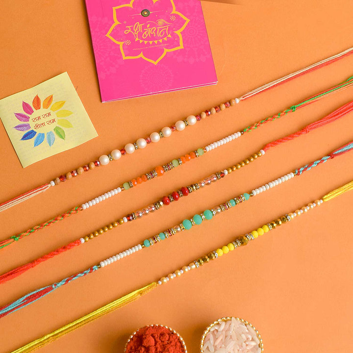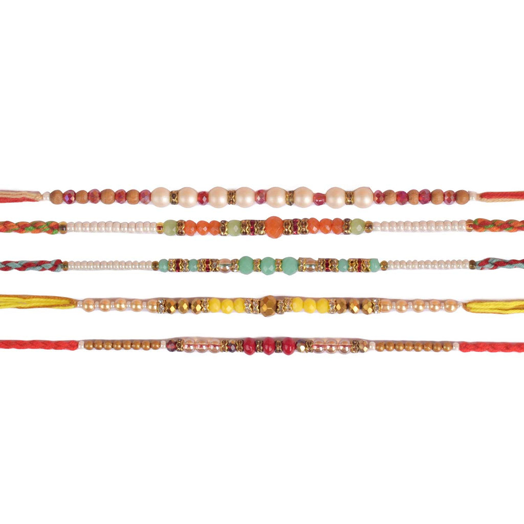 Designer Multicolor and Pearl Rakhi: Set of 5
