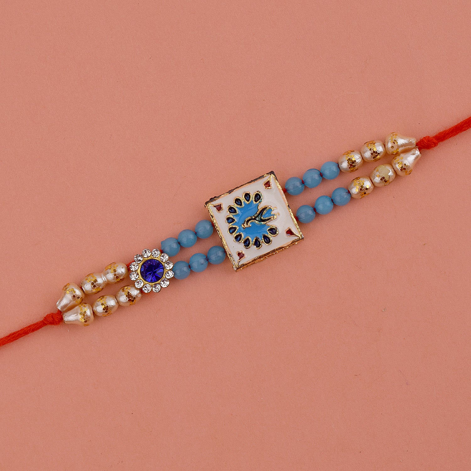 Beaded Rakhi: Adorned with intricate beads, our beaded rakhi collection exudes charm and elegance. Celebrate the joyous bond with your siblings as you tie these vibrant and delightful rakhis on their wrists.