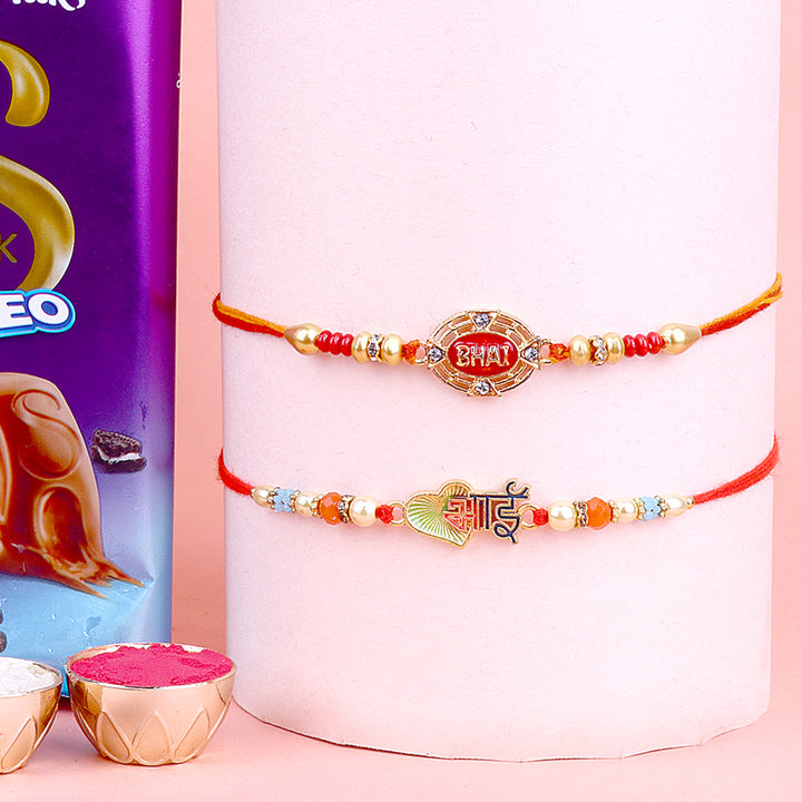 • Package: Set of 2 Bhaiya Rakhi, 1 Greeting card, 1 Roli Chawal Bottle, 1Β Chocolate Pack