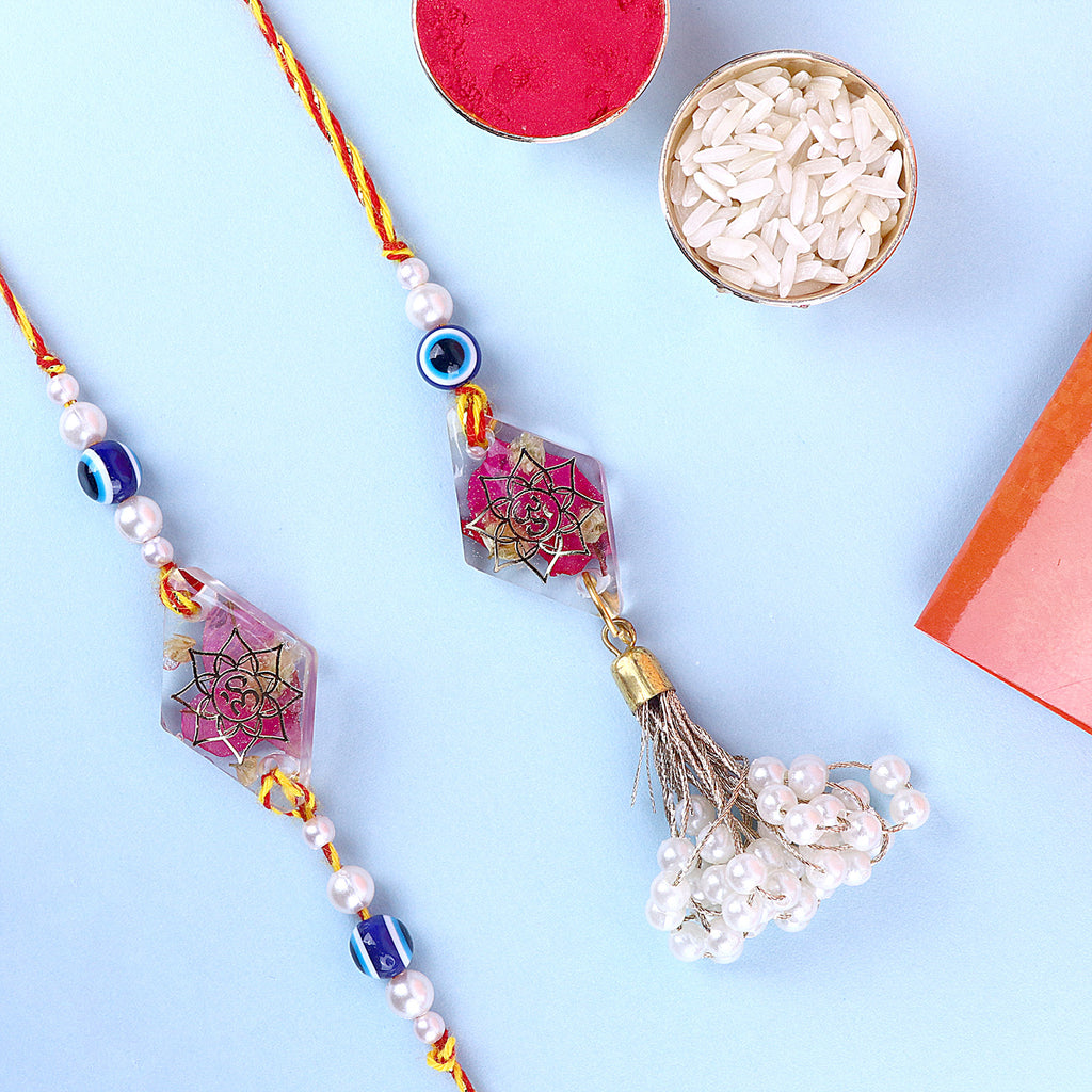 Beaded Bhaiya Rakhi Set of 2: Bedecked with colorful beads, these rakhis represent the joyous moments and cherished memories of growing up together. Embrace nostalgia and affection with this delightful beaded rakhi set.