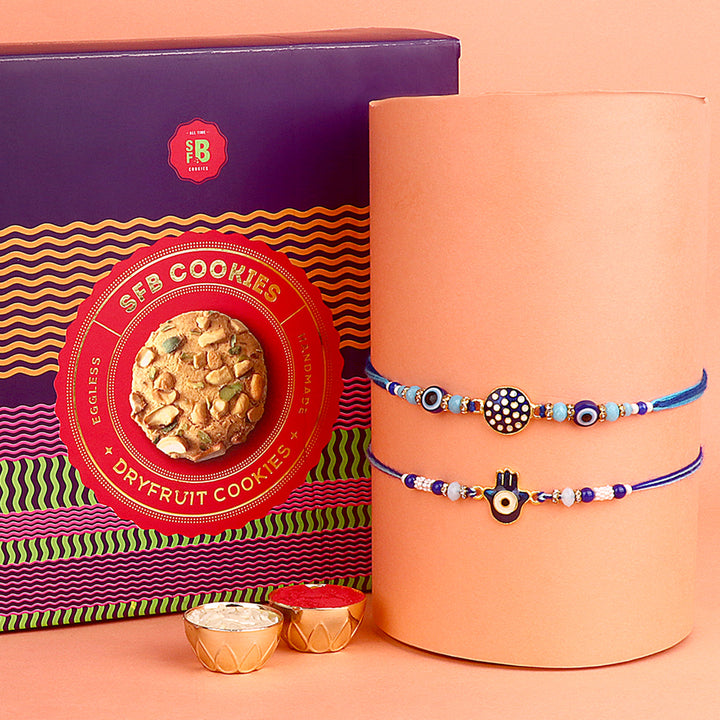 • About Product: Celebrate the joyous occasion of Rakhi with our delightful Rakhi with Cookies gift set. This perfect combination features a beautifully crafted Rakhi symbolizing the bond between siblings, paired with a selection of scrumptious cookies that will leave your taste buds craving for more. Indulge in the mouthwatering flavors and textures of these delectable treats, perfectly complementing the heartfelt sentiments shared between brothers and sisters. Whether you're near or far, our Rakhi with Cookies gift set is a sweet and thoughtful way to express your love and strengthen the cherished bond you share. Make this Raksha Bandhan truly memorable with this irresistible combination.