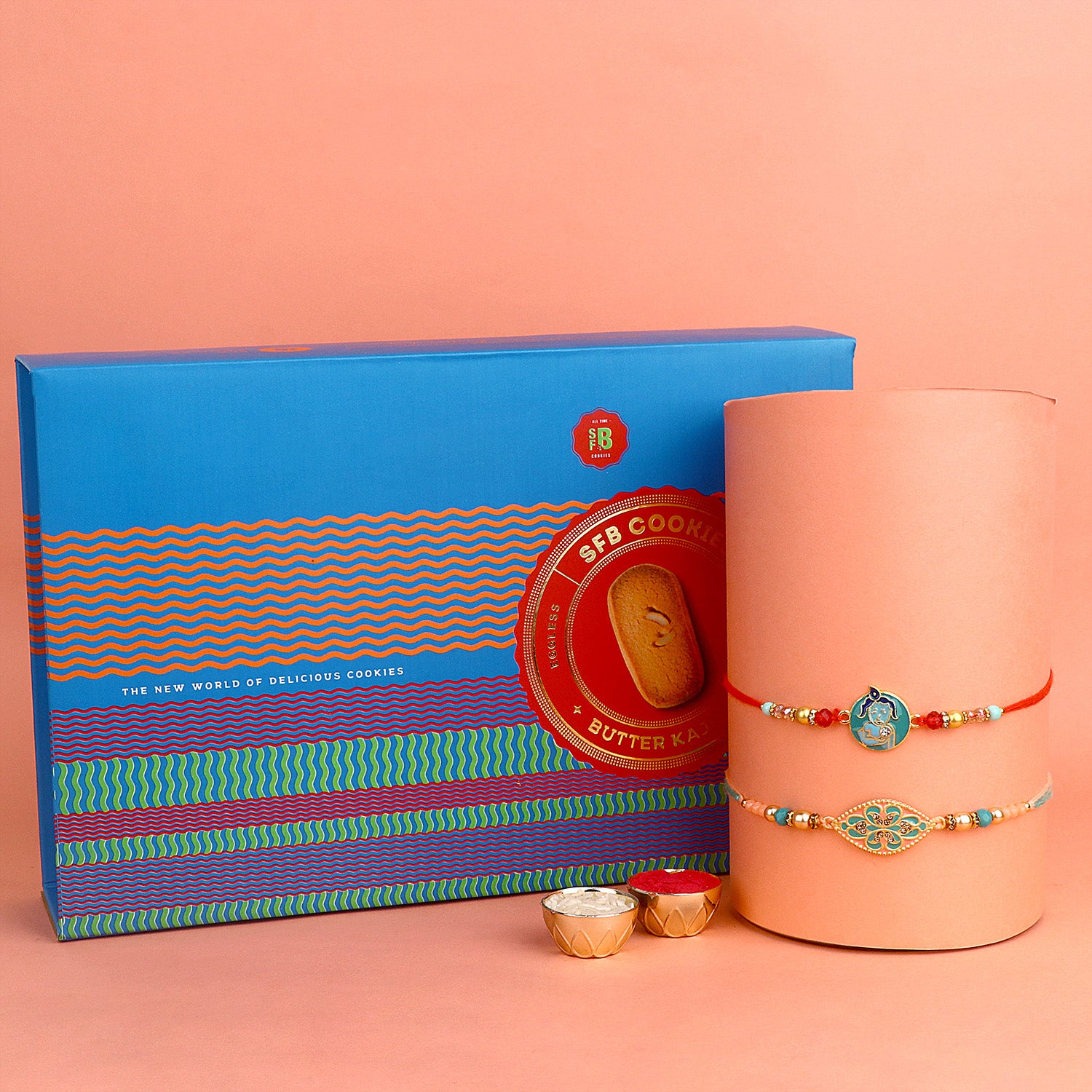• About Product: Celebrate the joyous occasion of Rakhi with our delightful Rakhi with Cookies gift set. This perfect combination features a beautifully crafted Rakhi symbolizing the bond between siblings, paired with a selection of scrumptious cookies that will leave your taste buds craving for more. Indulge in the mouthwatering flavors and textures of these delectable treats, perfectly complementing the heartfelt sentiments shared between brothers and sisters. Whether you're near or far, our Rakhi with Cookies gift set is a sweet and thoughtful way to express your love and strengthen the cherished bond you share. Make this Raksha Bandhan truly memorable with this irresistible combination.