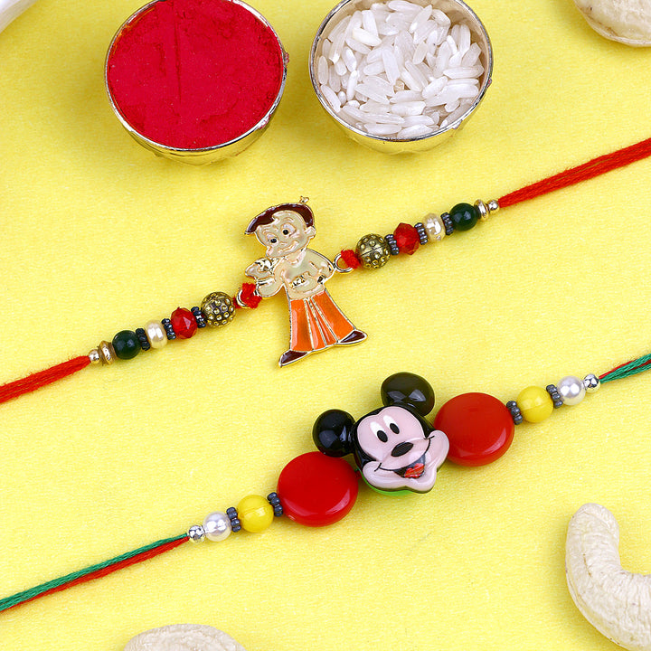 Beaded Bhaiya Rakhi Set of 2: Bedecked with colorful beads, these rakhis represent the joyous moments and cherished memories of growing up together. Embrace nostalgia and affection with this delightful beaded rakhi set.