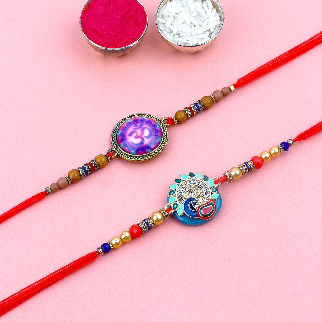 Beaded Bhaiya Rakhi Set of 2: Bedecked with colorful beads, these rakhis represent the joyous moments and cherished memories of growing up together. Embrace nostalgia and affection with this delightful beaded rakhi set.