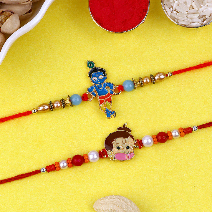 Beaded Bhaiya Rakhi Set of 2: Bedecked with colorful beads, these rakhis represent the joyous moments and cherished memories of growing up together. Embrace nostalgia and affection with this delightful beaded rakhi set.