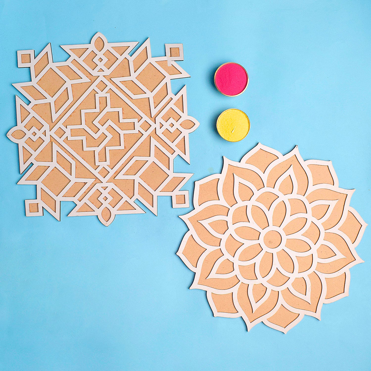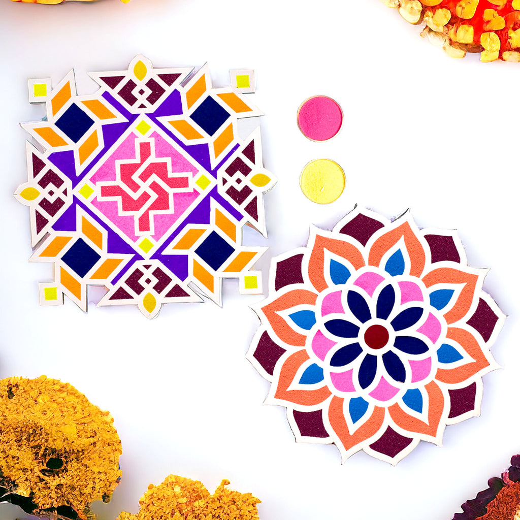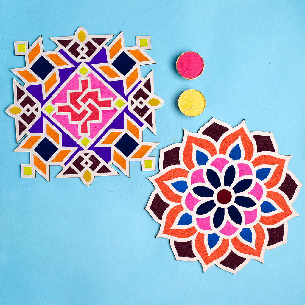 Set of 2 Rangoli Stencils with a Splash of Colors