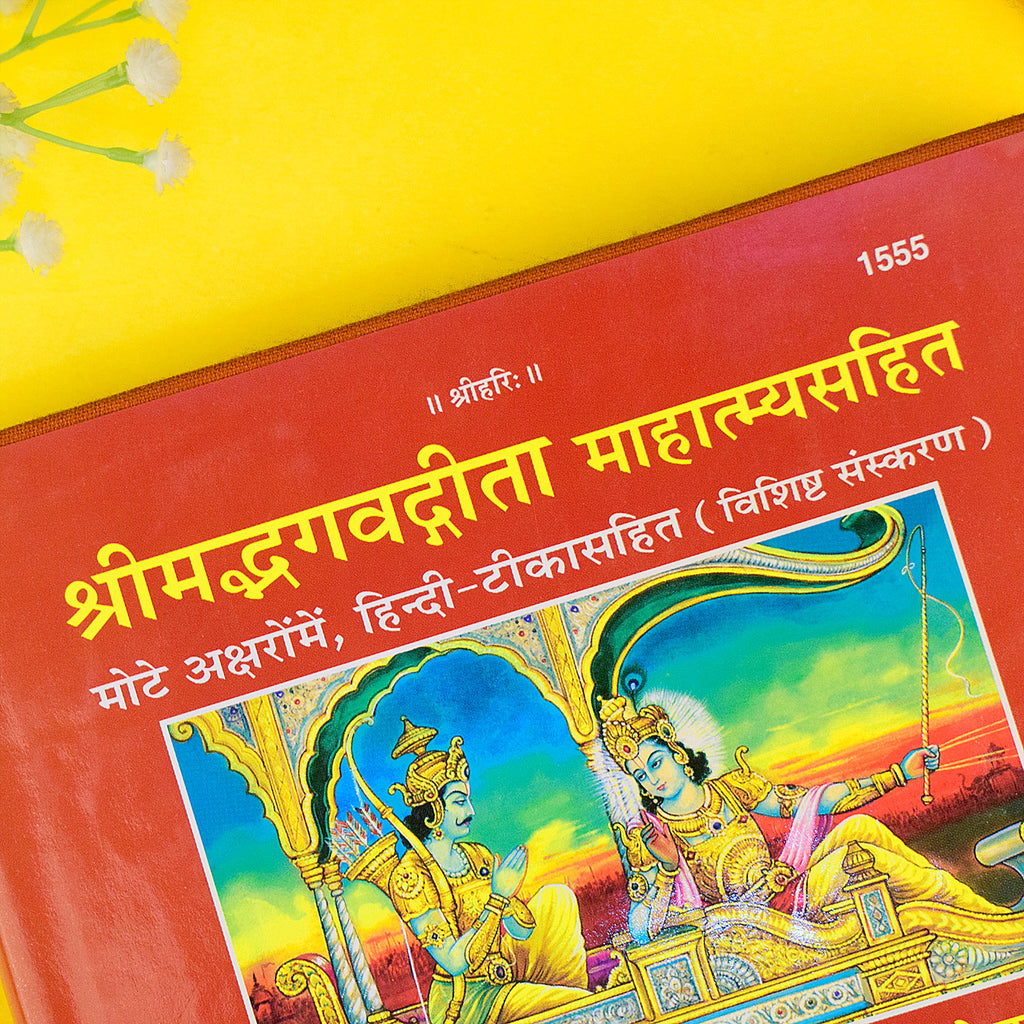 Shrimad Bhagwad Gita 1555 | Bhagavad Gita Hindi book | Divine Hindu scripture | Krishna Arjuna Gita | Spiritual Gita book | Sacred Hindu text | Bhagavad Gita publication | Gita in Hindi | Religious Hindu literature |