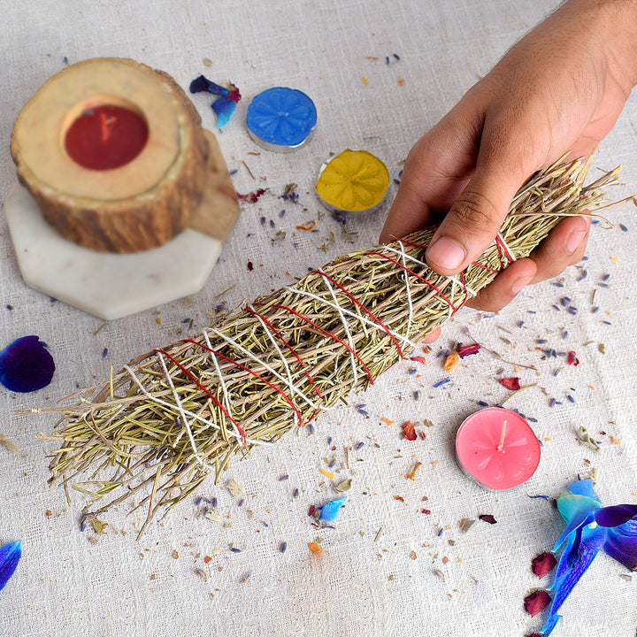 • About Product:Β We at Satvikstore.in Experience the transformative power of Rosemary Healing Smudges, now available at our online store. Immerse yourself in the invigorating essence of rosemary and sacred herbs, harmonizing your space and uplifting your spirit. Handcrafted with care, our smudges effectively cleanse negative energies, creating room for positivity to flourish. Ideal for meditation, energy clearing, or setting a serene ambiance, Rosemary Healing Smudges are a holistic essential. Discover the rejuvenating benefits of nature by ordering your Rosemary Healing Smudges today and unlock a world of balance and revitalization for your mind, body, and soul.