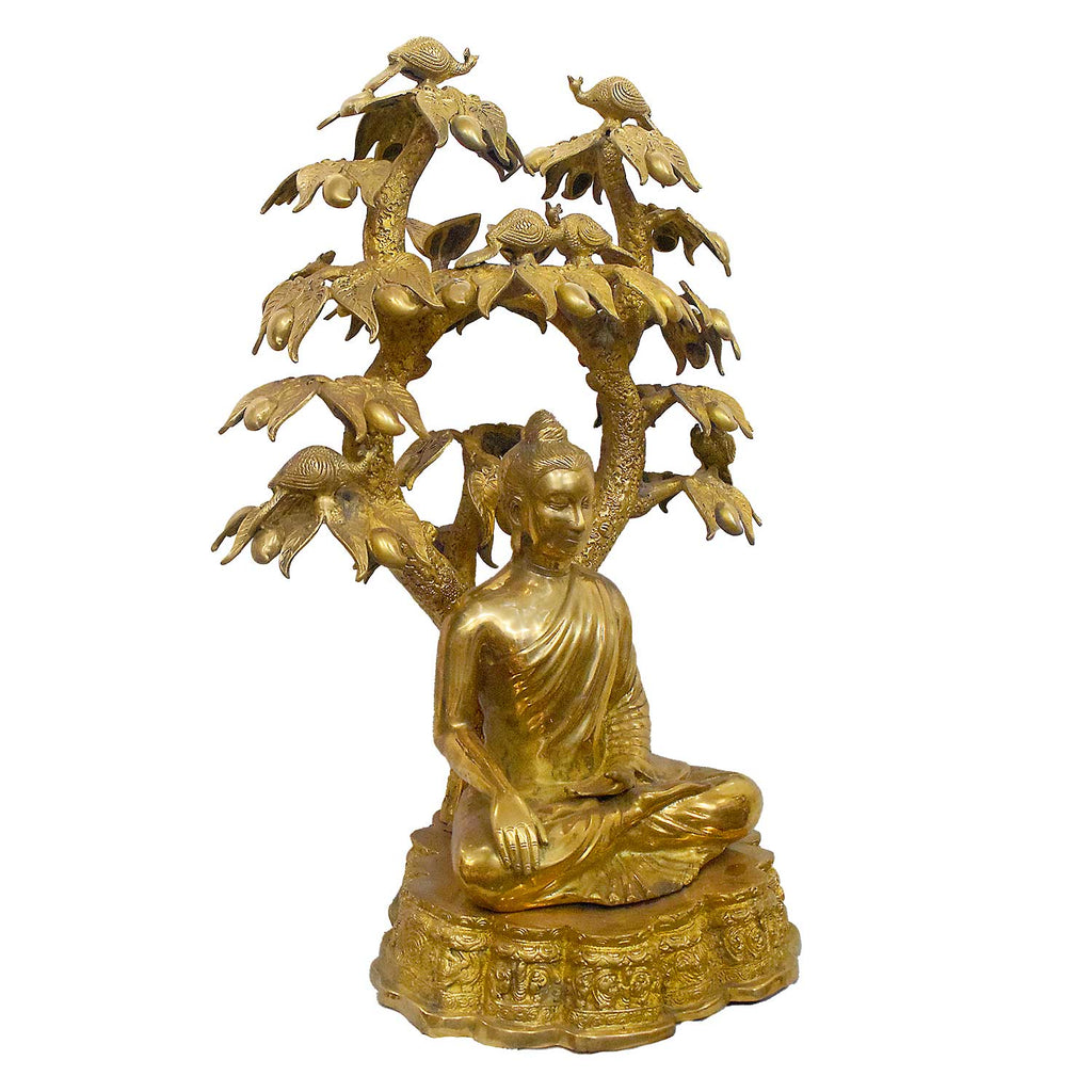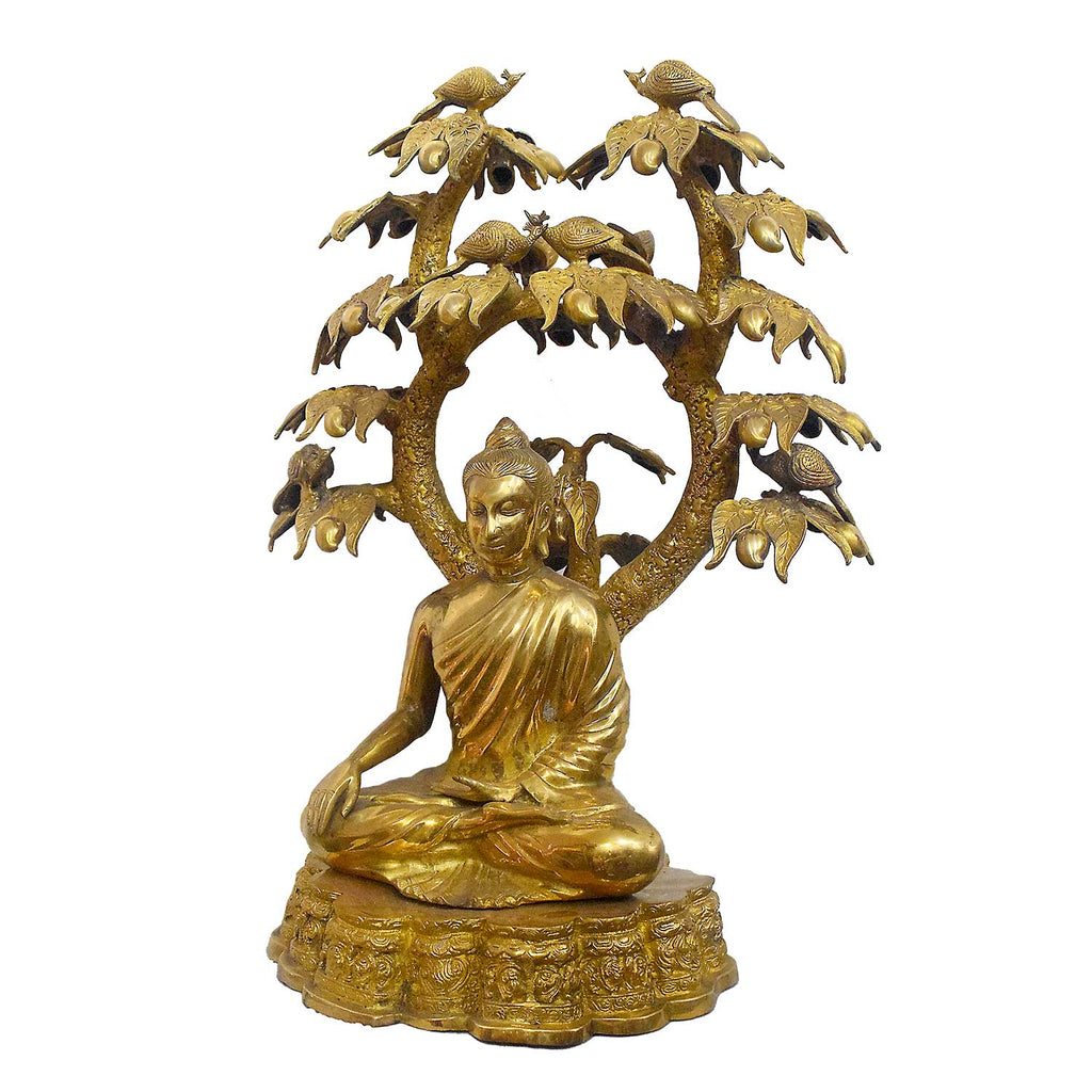 Buy Online | Brass Buddha Idol With Turtle-Bird Tree | Satvikstore.in – satvikstore.in