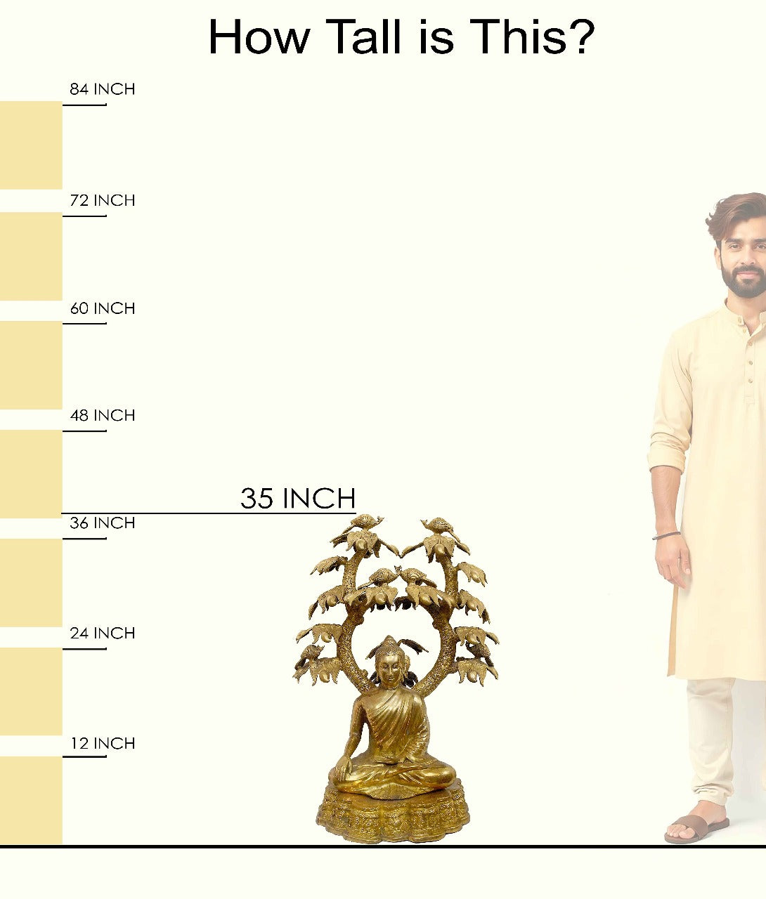 • About the Product: 35 Inch Brass Meditating Buddha Under Turtle & Bird Tree Statue