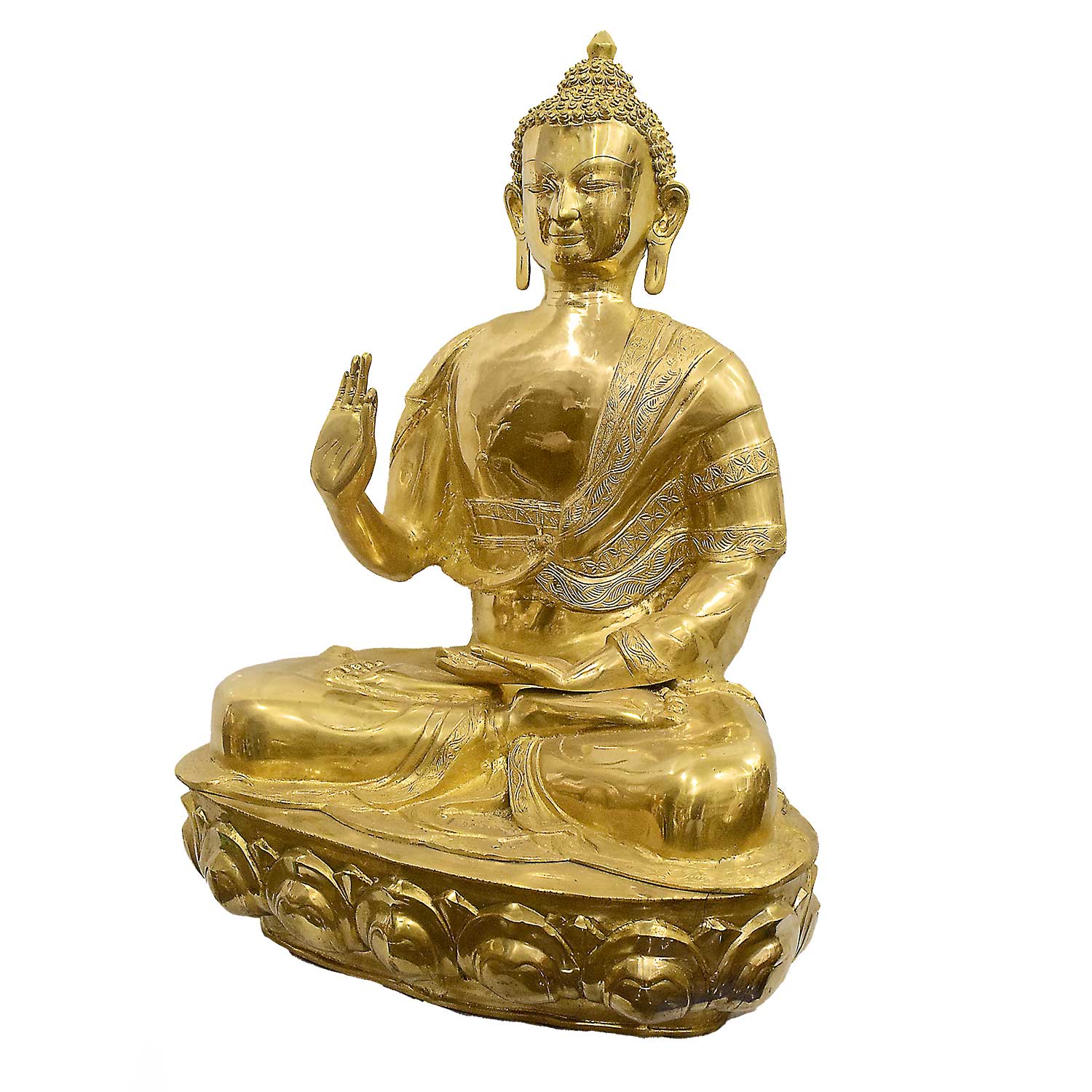 47 Inch Exquisite Brass Buddha Statue - Abhaya Mudra, Lotus Seat