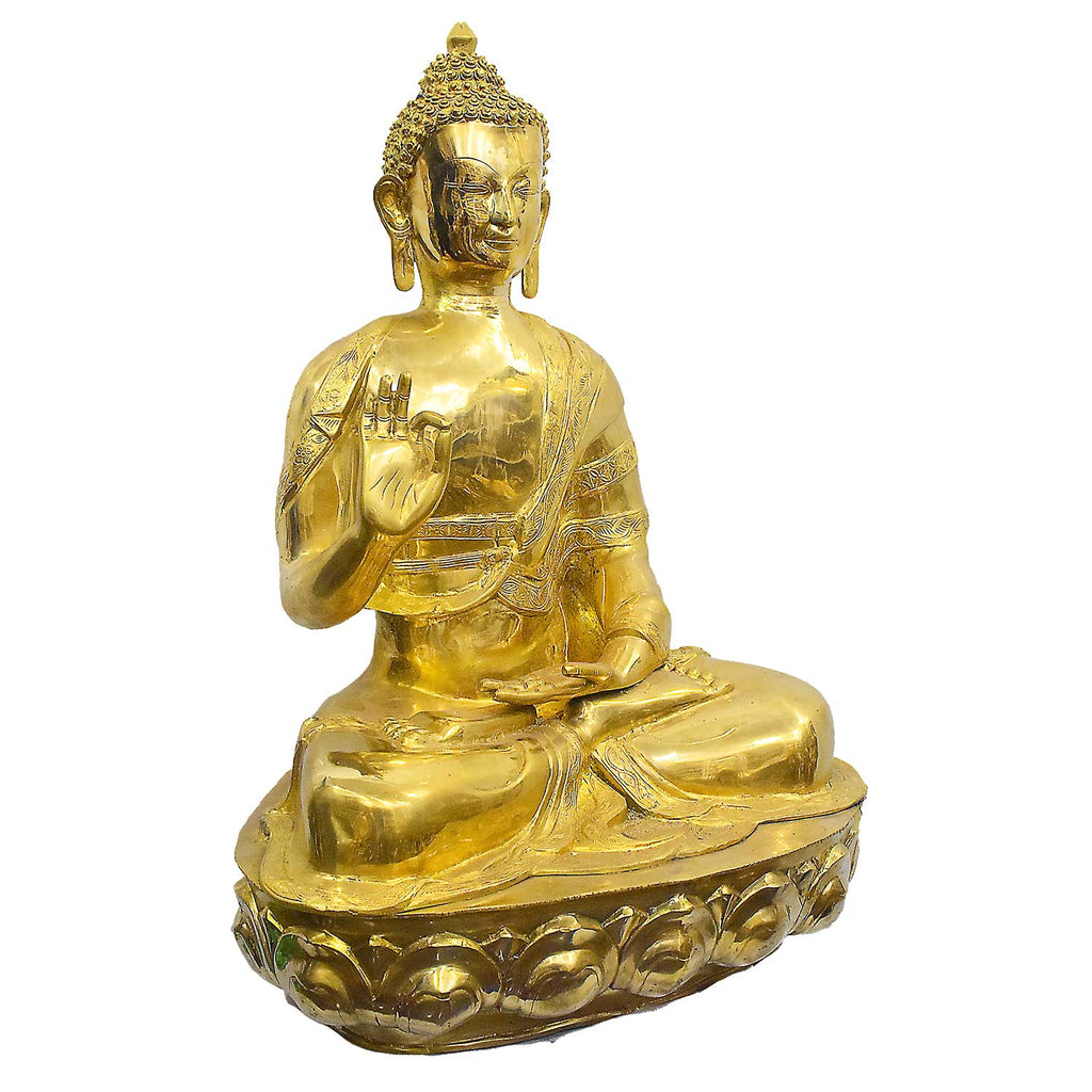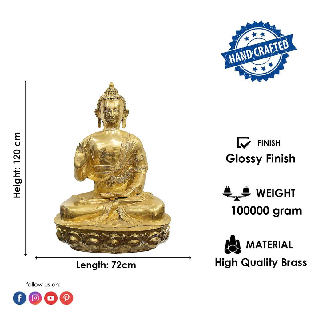 • About the Product:  47 Inch Exquisite Brass Buddha Statue - Abhaya Mudra, Lotus Seat