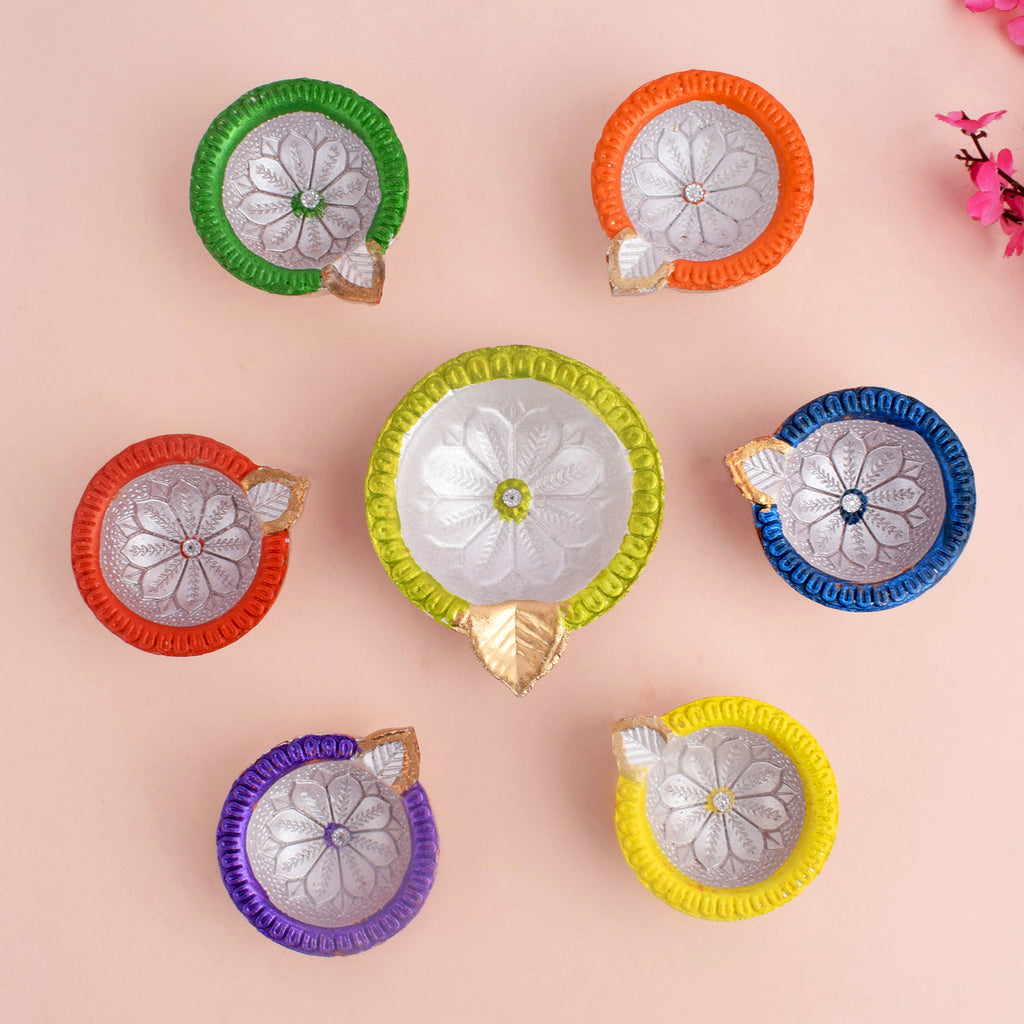 • Product Details: Material: Clay/Terracotta Dimensions: Regular Diya Height: 2.2cm, Length: 6.2cm, Large Diya Height: 2.5cm, Length: 8.7cm,Β Weight: 700gram, Finish Type: Glossy.