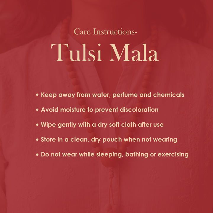 To maintain the sanctity and durability of your Tulsi Mala, follow these simple care tips: