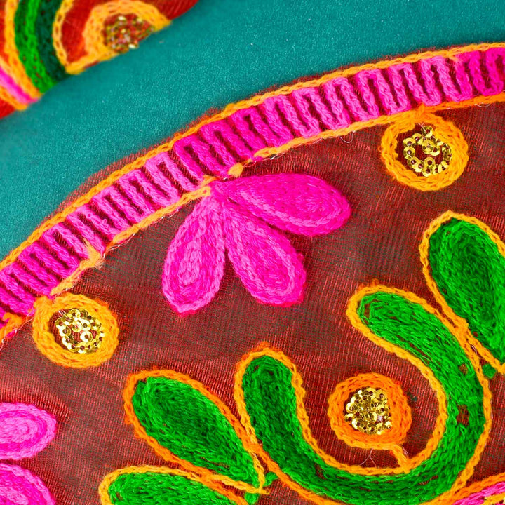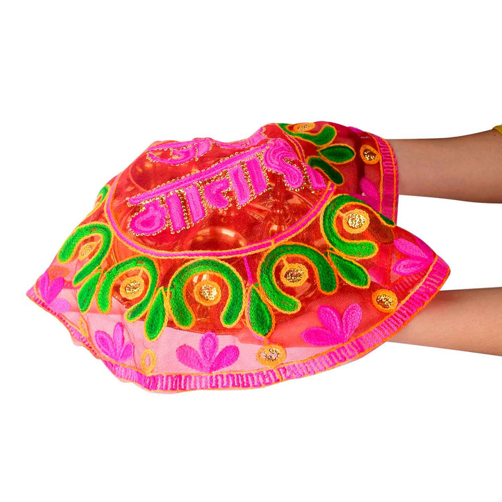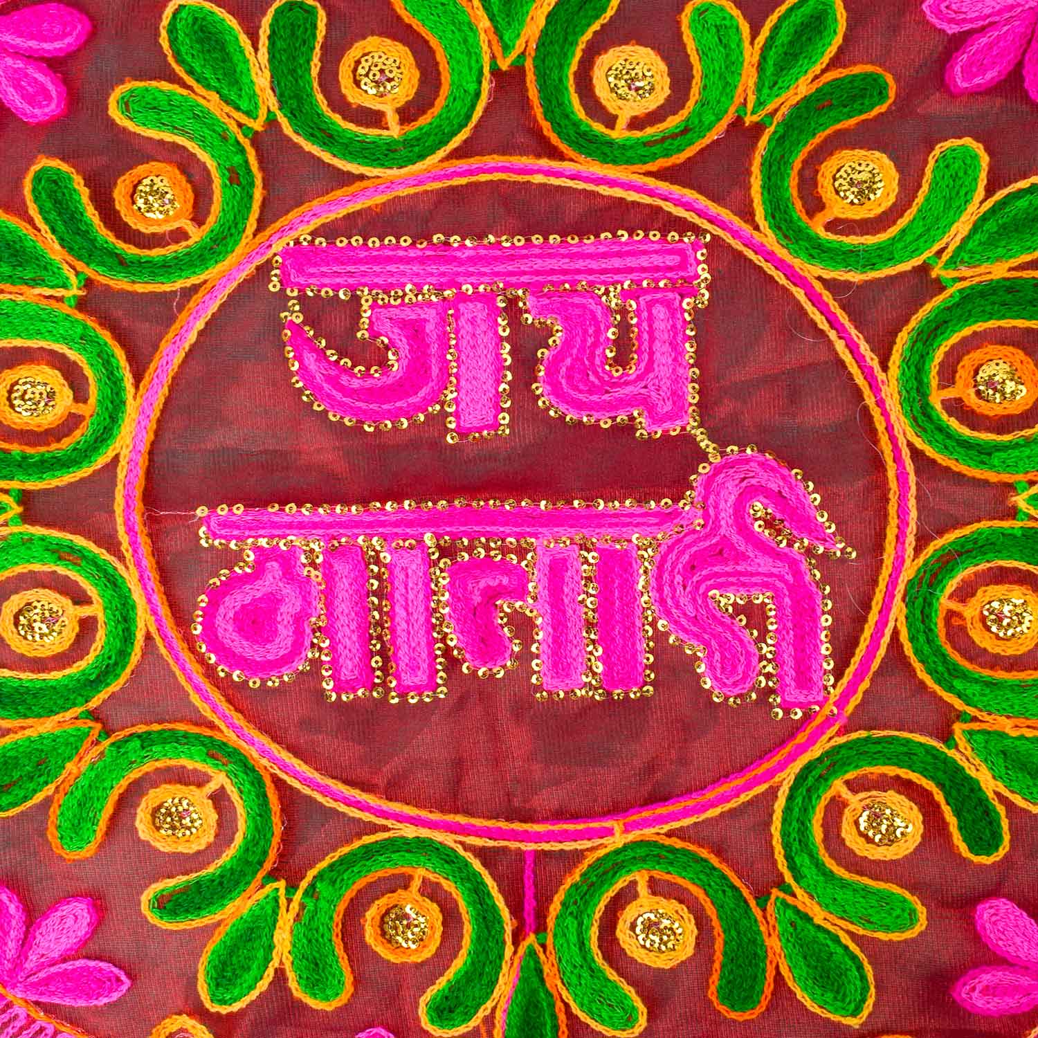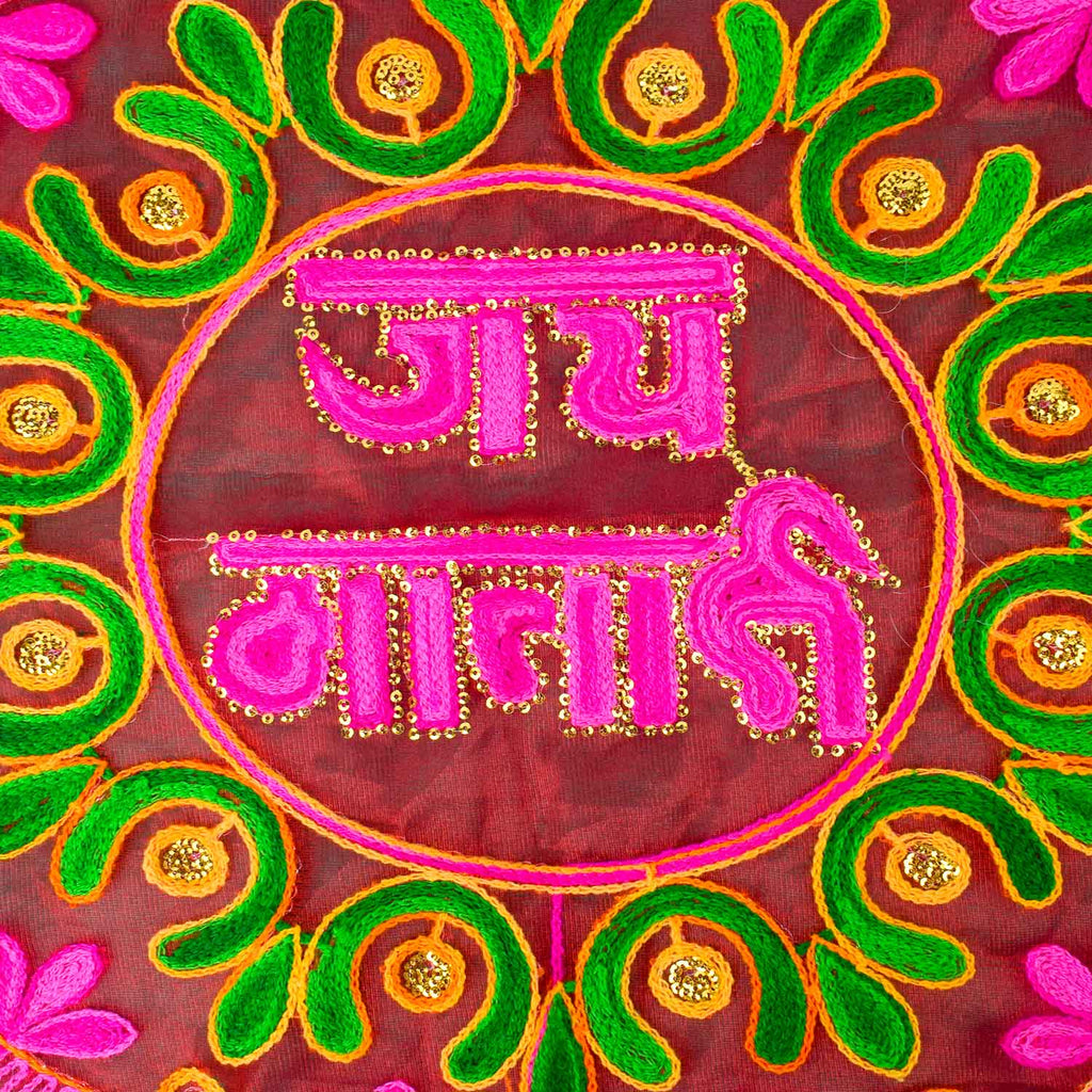 Elevate your pooja rituals with this radiant pink organza Thal Posh / Thali Cover, beautifully adorned with “Jai Mata Di” embroidery. Crafted with premium organza fabric, it blends traditional design with festive charm. Ideal for Navratri, Durga Pooja, Mata Ki Chowki, and other auspicious occasions, this pooja accessory adds a spiritual and elegant touch to your sacred offerings.