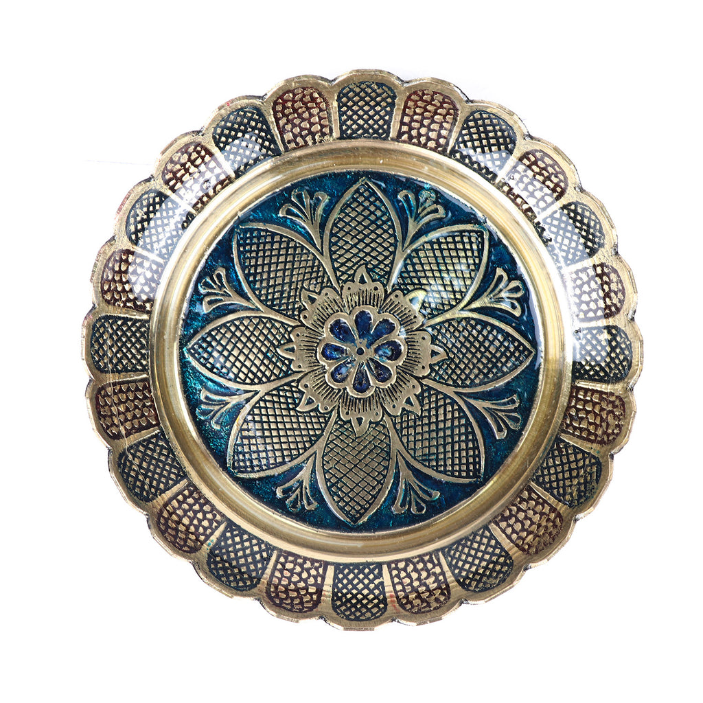 Brass Colored Turtle with Nakashi Plate/Tray (Blue)