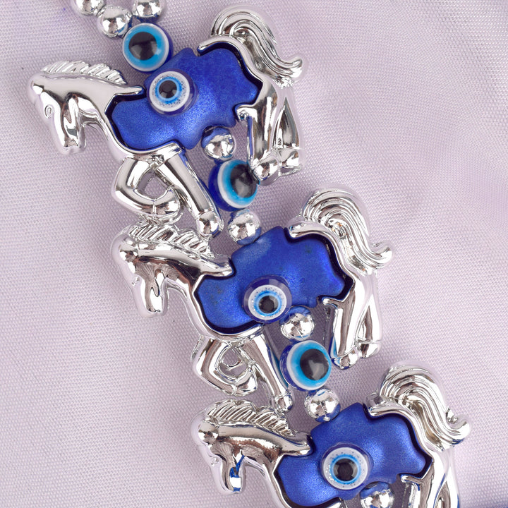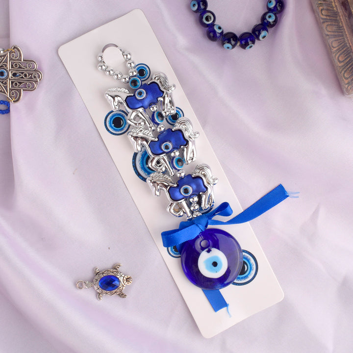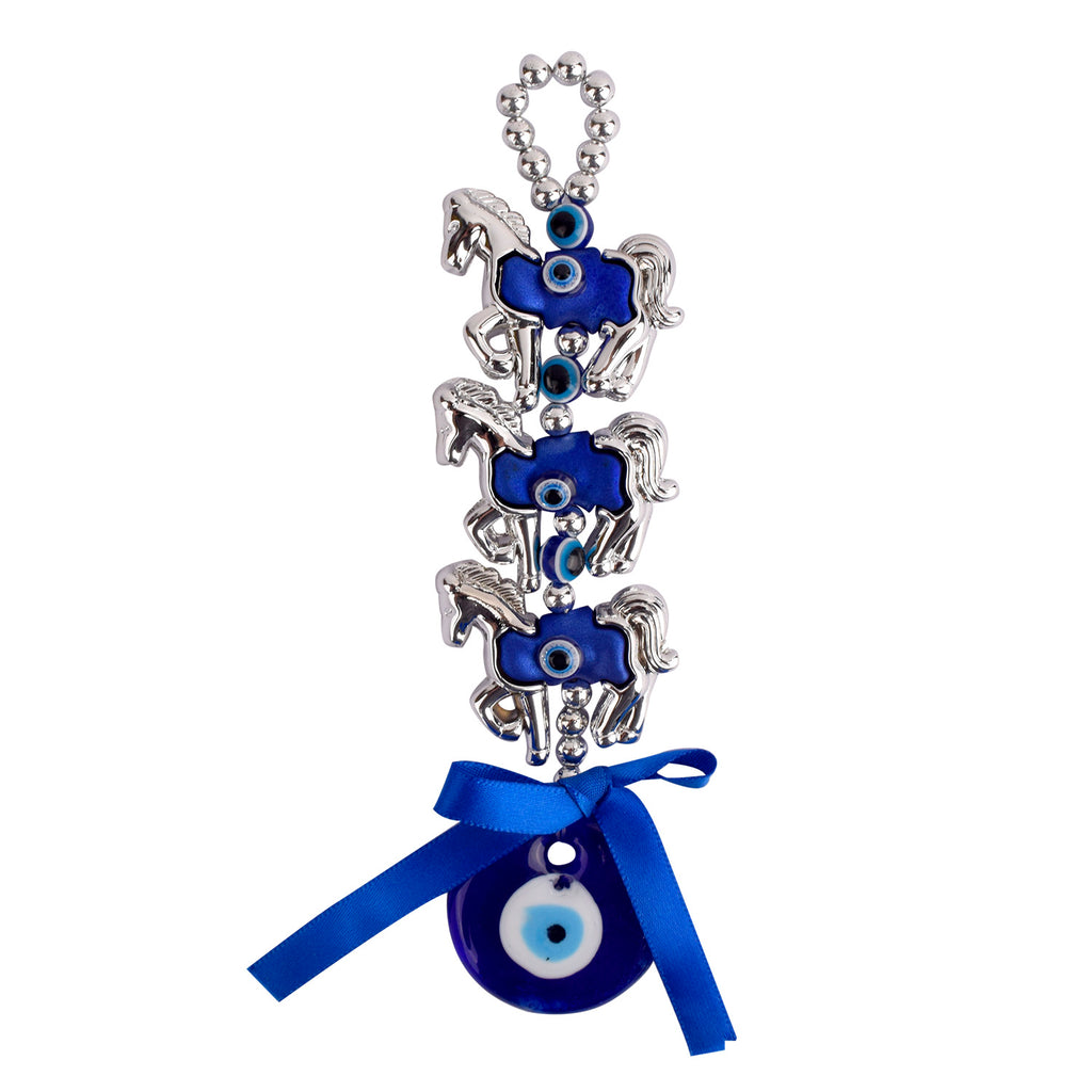 Material: High-Quality Glass Evil Eye, Thread, 3 Horse Charms