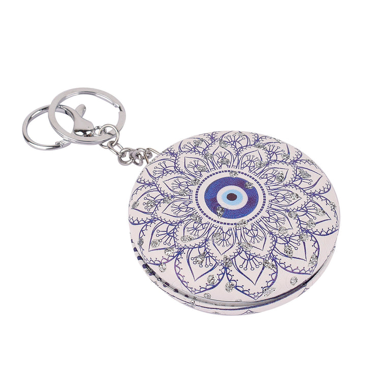 Round Evil Eye Keychain with Foldable Mirror – Stylish & Protective Accessory