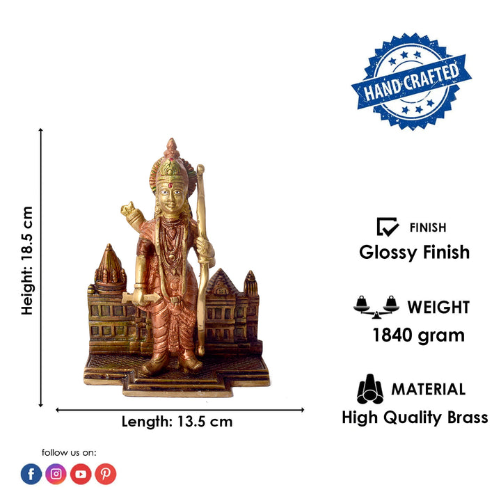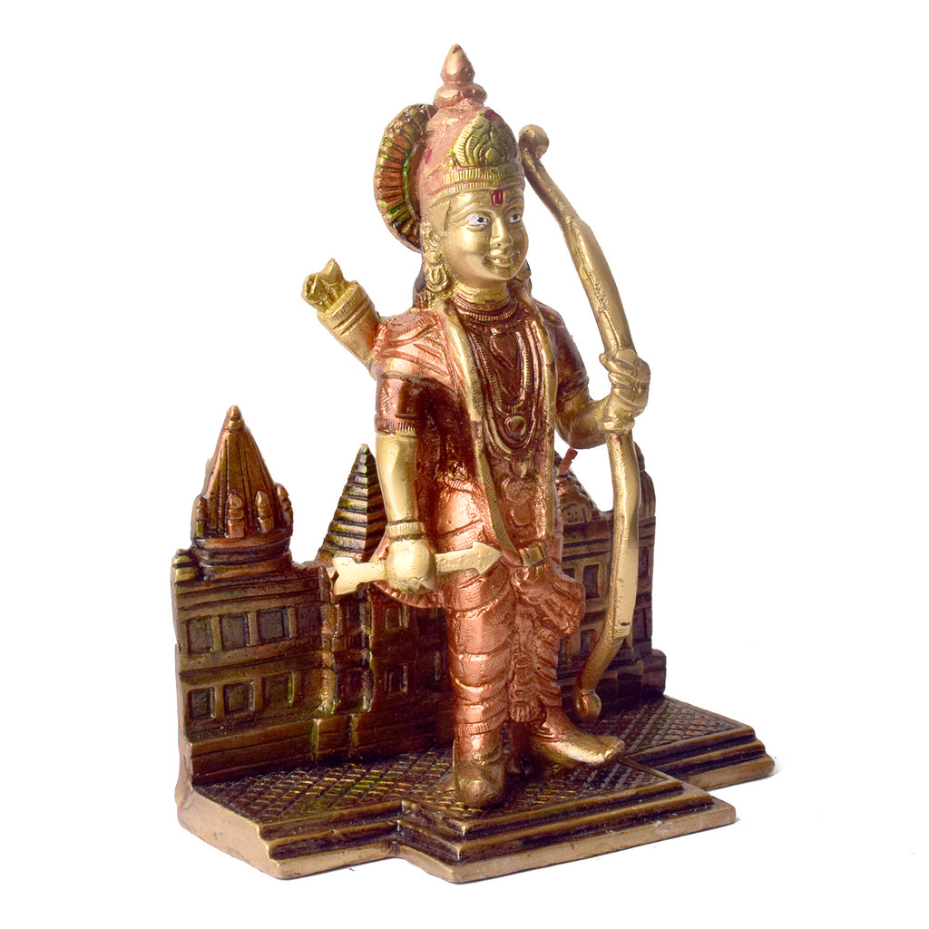 Brass Ram Mandir Statue | Lord Ram Brass Idol | Handmade Brass Ram Murti | Antique Finish Ram Mandir | Victorious Ram Temple Statue | Best Gift for Housewarming | Brass Idol | Exclusive Brass Ram Mandir |