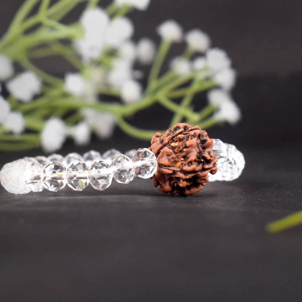 • Item Name: 5 Mukhi Rudraksha & Sphatik Bead Bracelet for Peace and Spiritual Growth