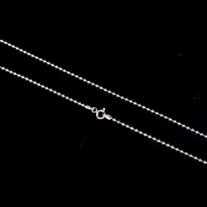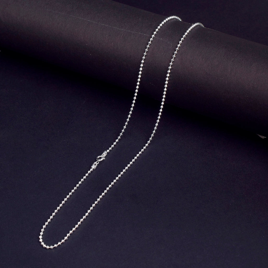 About Product: The 925 Pure Silver Beaded Chain is a timeless piece crafted with genuine sterling silver beads strung together for an elegant, subtle shine. This beautiful chain combines traditional charm with modern simplicity, making it perfect for daily wear or pairing with pendants and lockets. Lightweight and versatile, this beaded silver chain enhances any outfit β€” whether you wear it alone or layer it for a statement look.