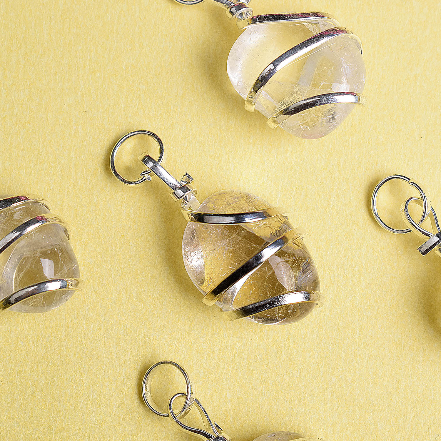 Clear Quartz Wire Wrapped Tumble Crystal Stone Pendant