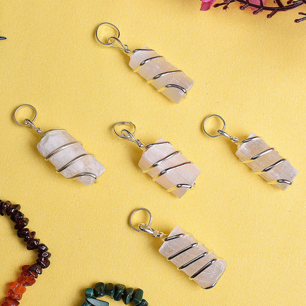 • Item Name: 1 Pc Natural Wire Wrapped Selenite Crystal Stone Pendant